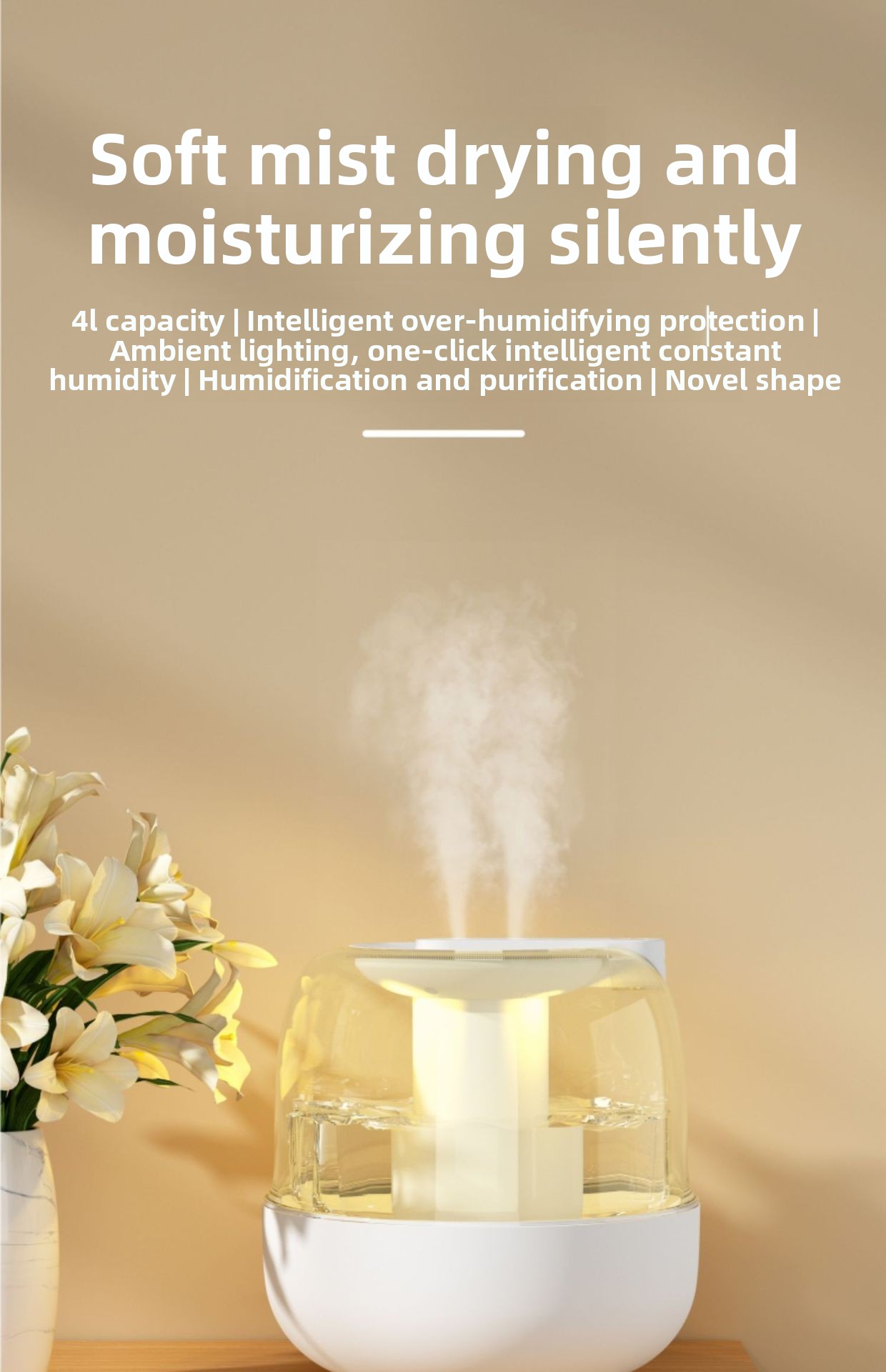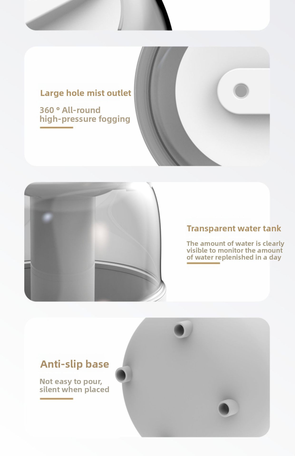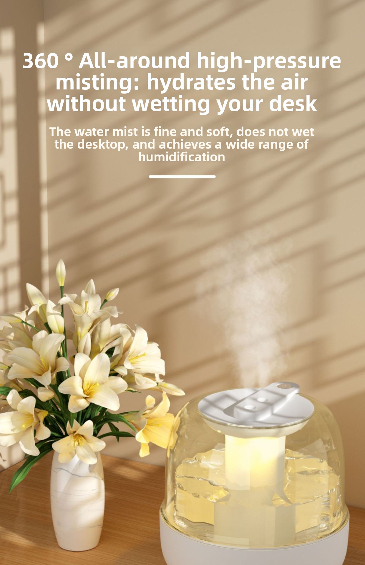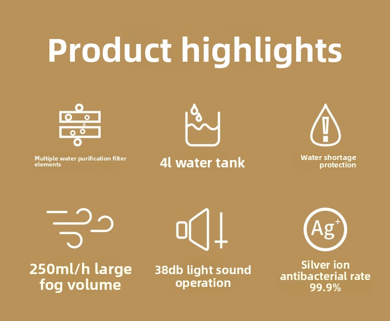 Dual Spray Nozzles – Two mist outlets for wider coverage and faster humidification