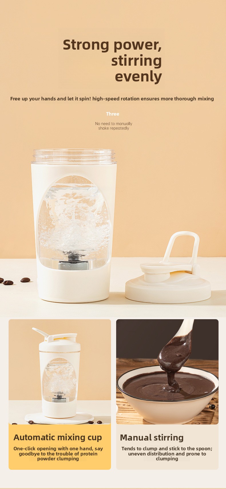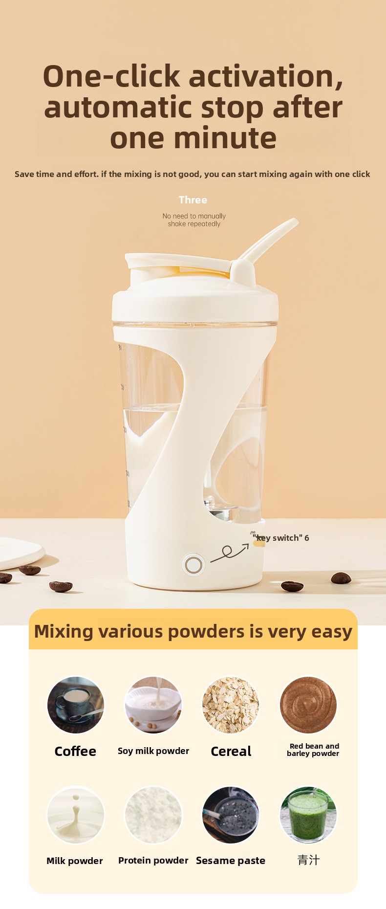 Automatic Mixing: One-button operation for effortless blending of protein shakes, coffee, and beverages.