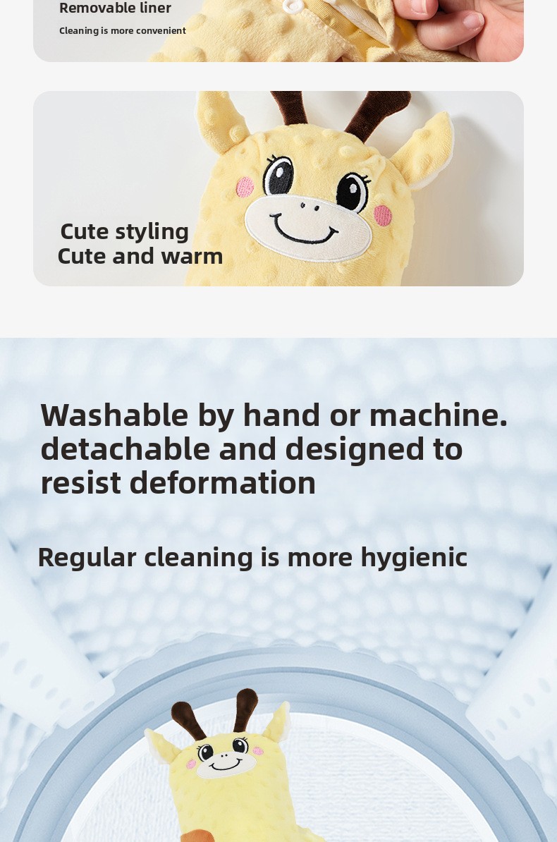Design: Cartoon style with multiple pattern options (e.g., deer, dinosaur, rabbit, goose, bear)