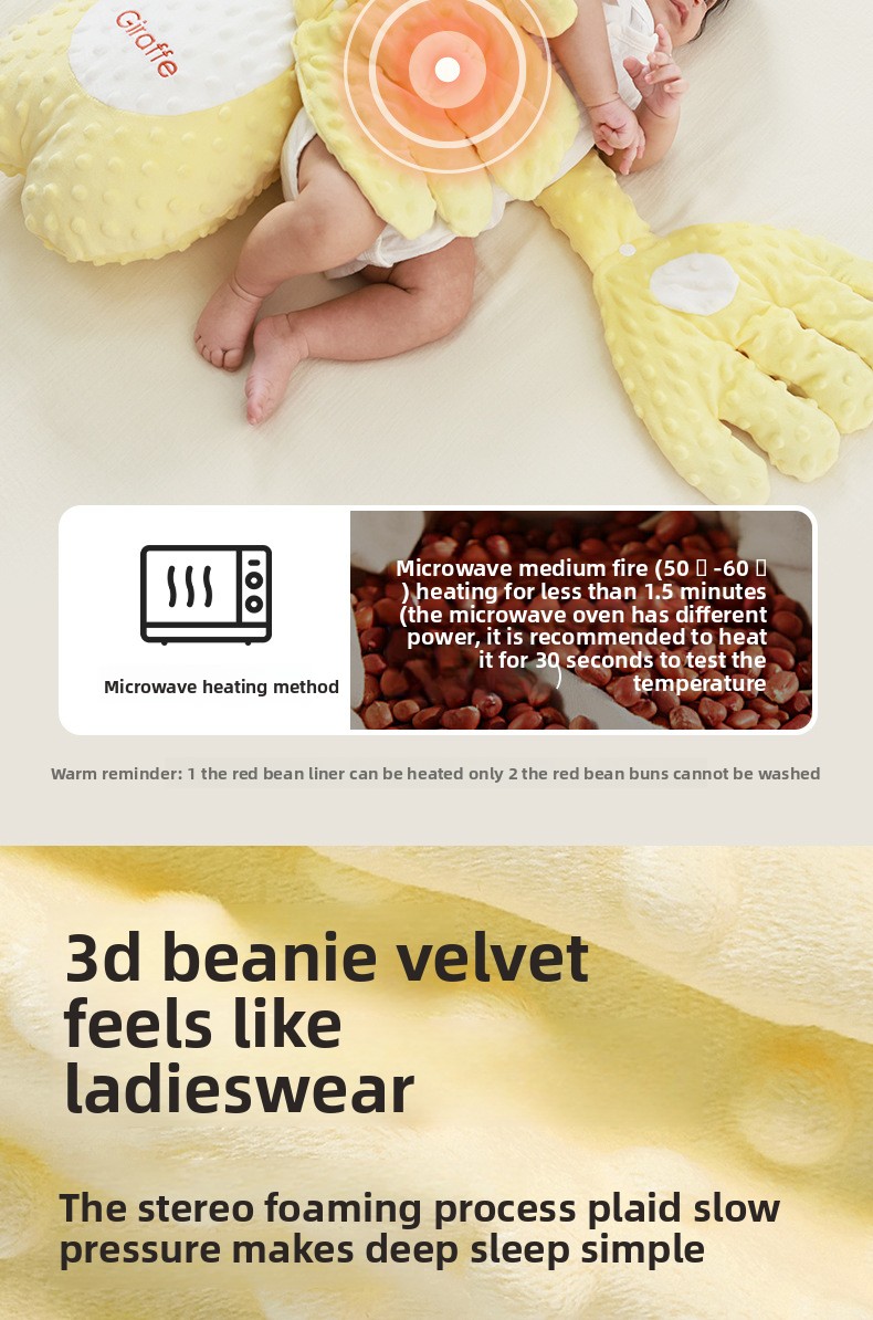 Heat Therapy: Provides warm compress function to comfort baby’s abdomen and promote relaxation.