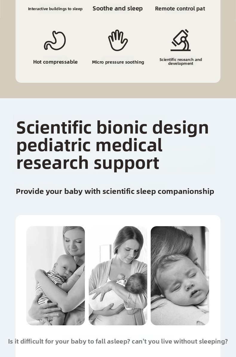 Soothing Function: Simulates gentle patting and hugging motions to calm babies and prevent startling during