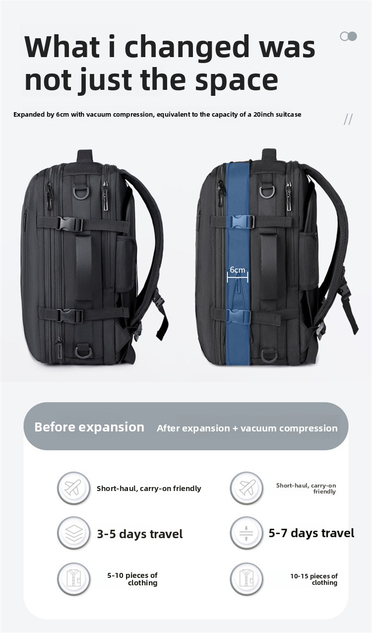 Large Capacity – 20-35L spacious design ideal for extended travel and business needs