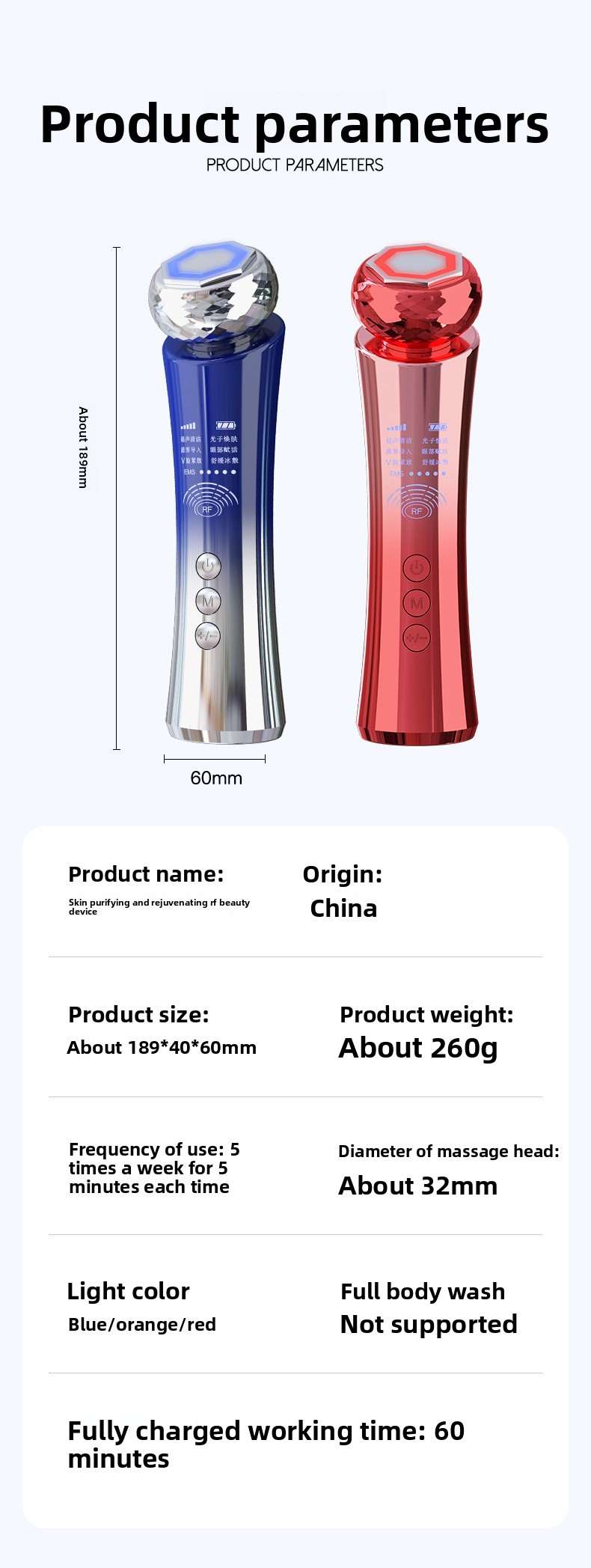 Functions: Massage, Skin Rejuvenation, Colored Light Therapy