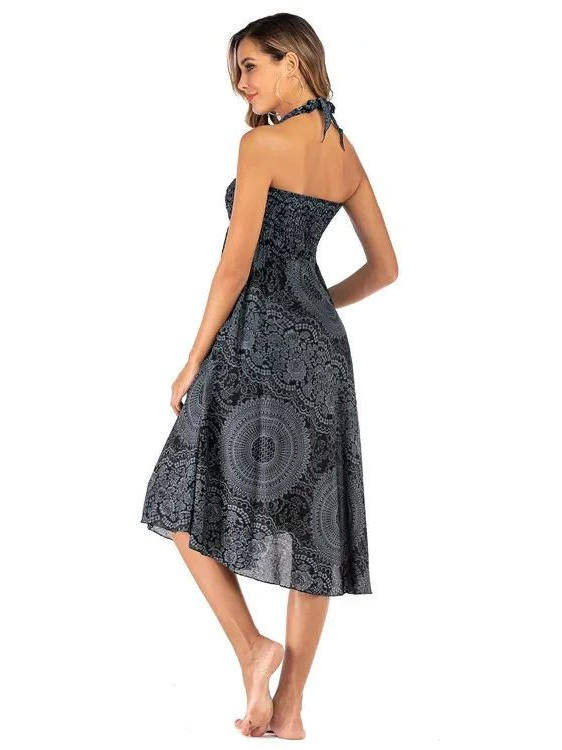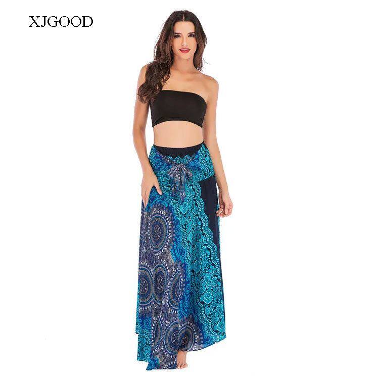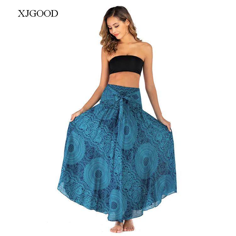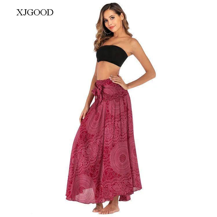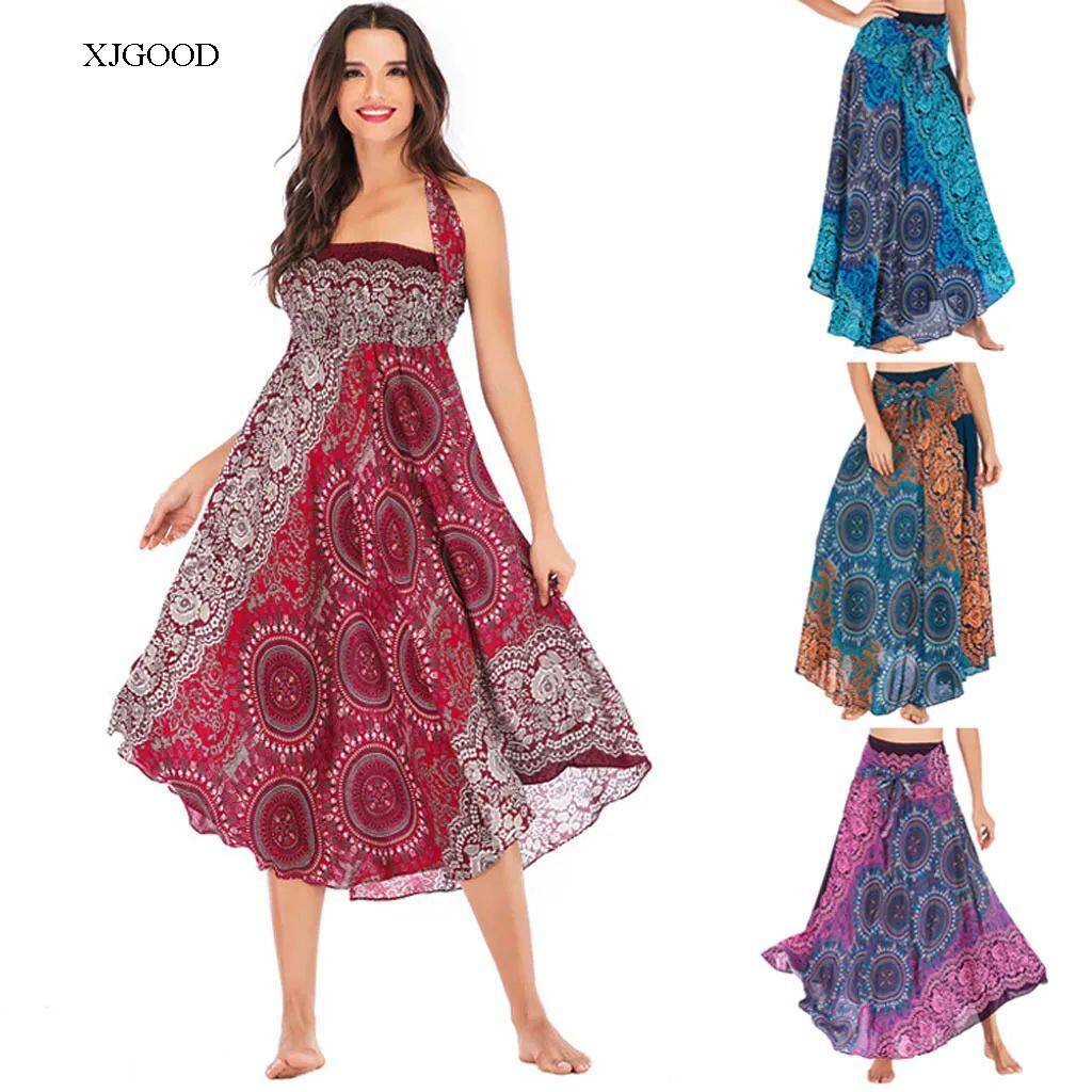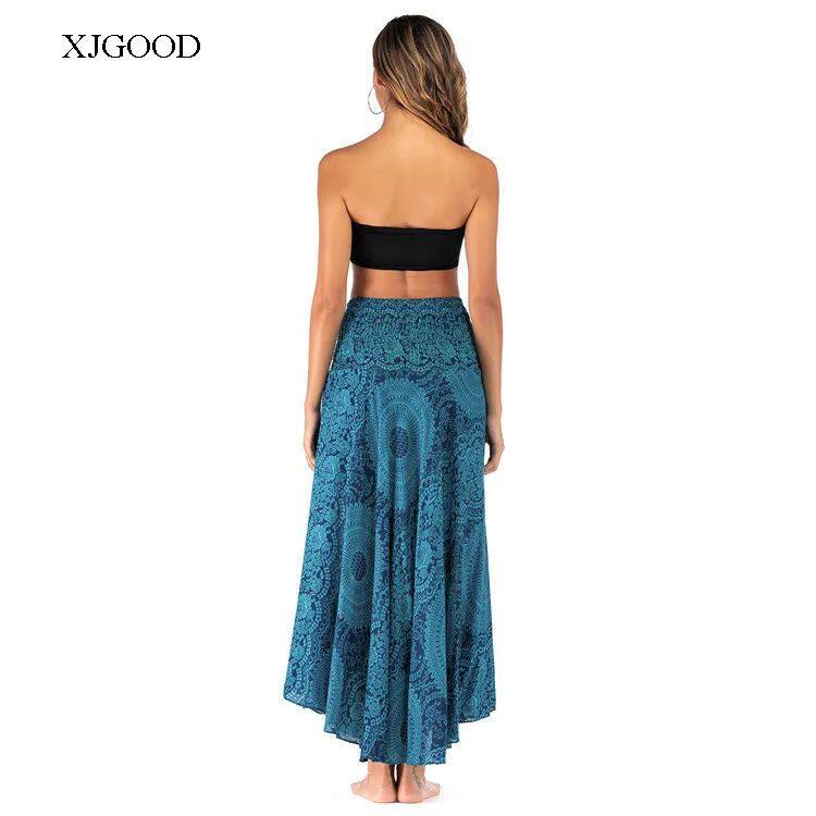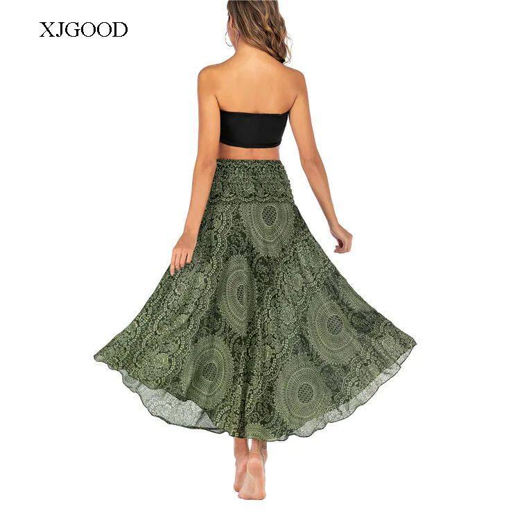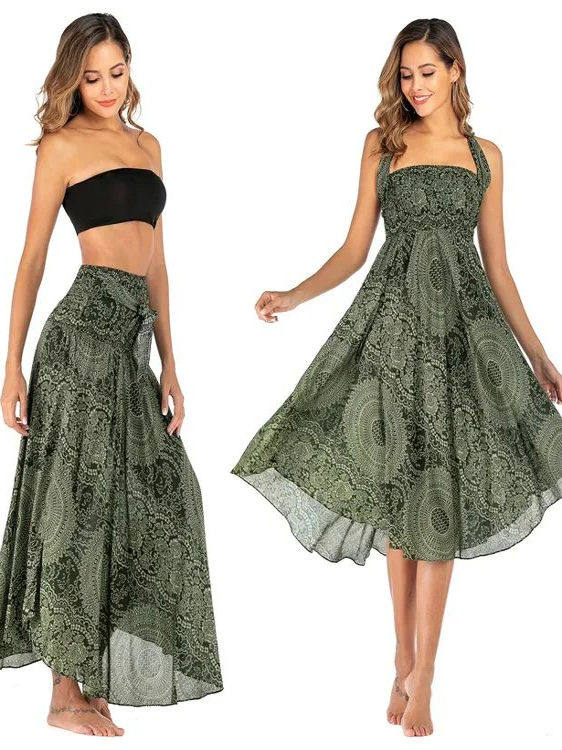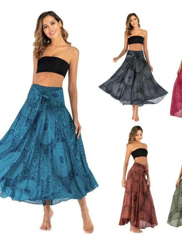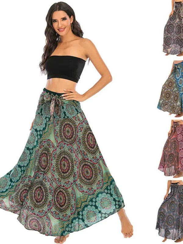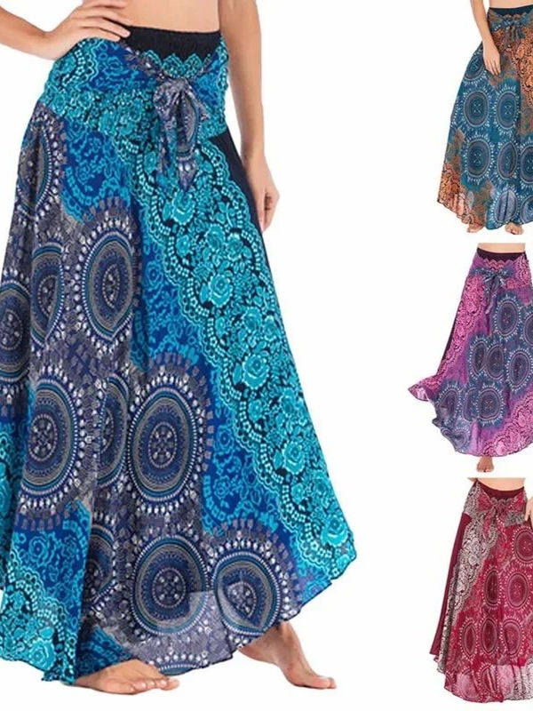 Bohemian Aesthetic – Features flowing pleated skirt with artistic patterns