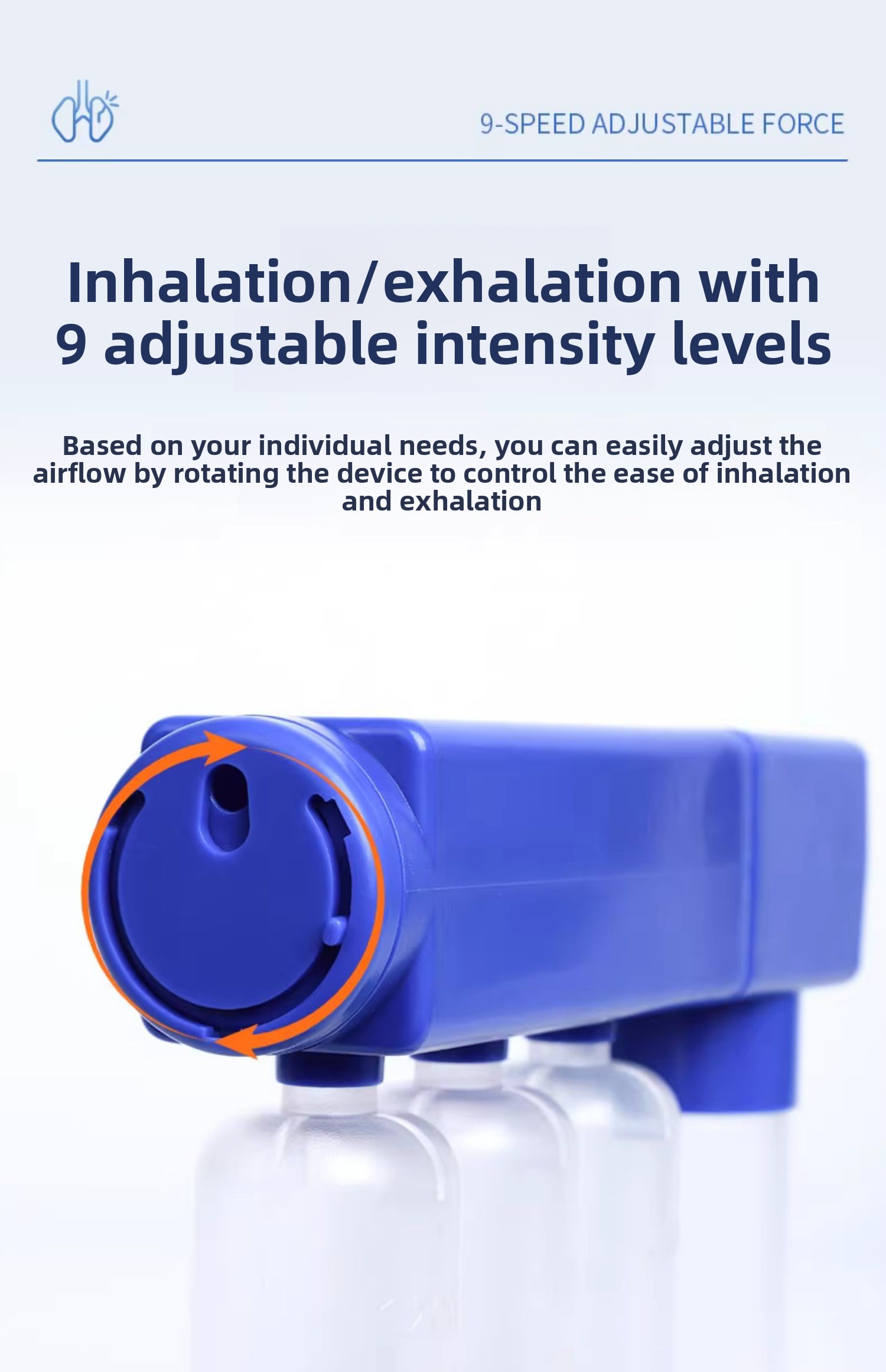 Adjustable resistance – Customizable breathing intensity for progressive lung training
