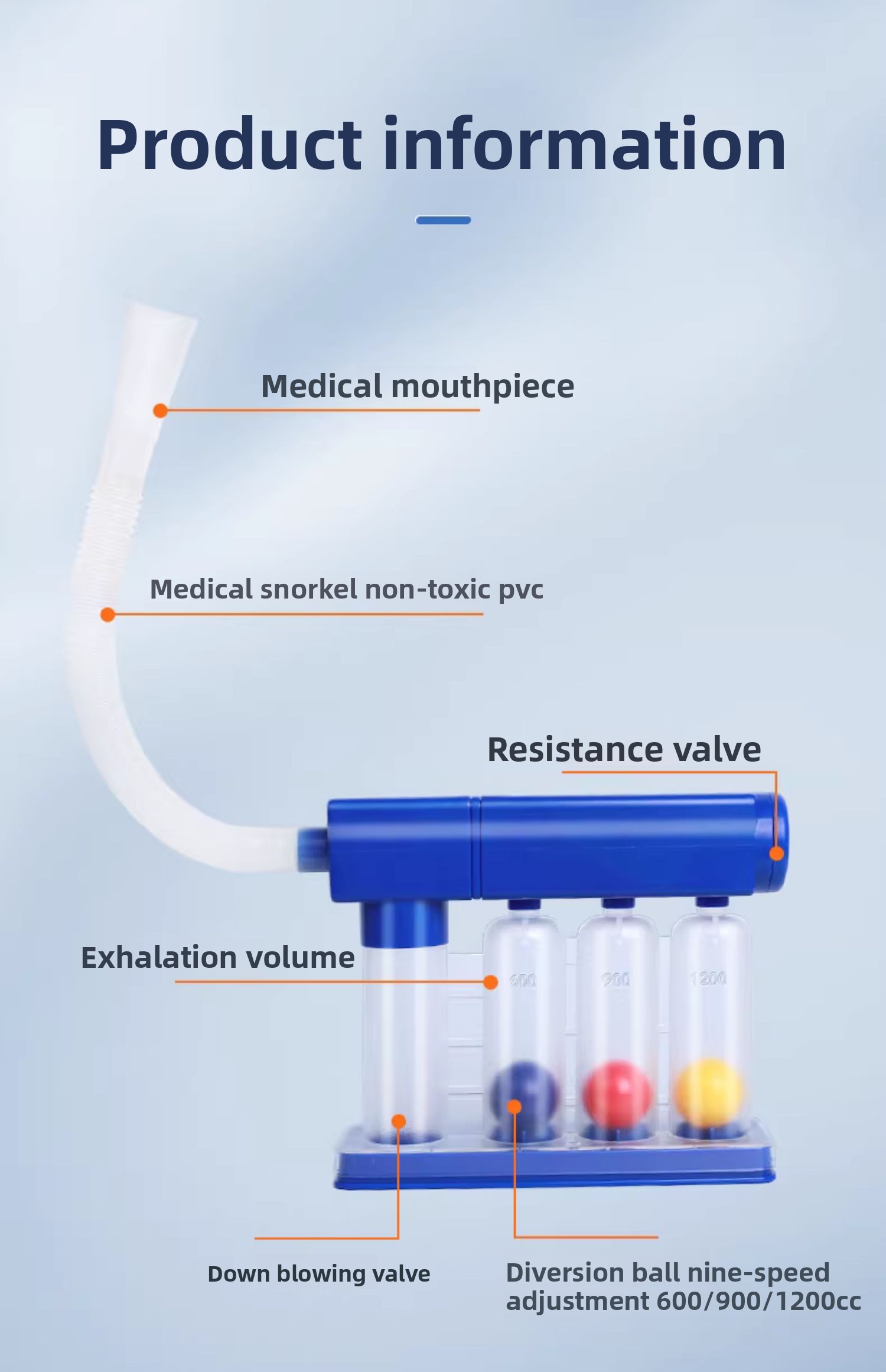 Three-ball design – Visual feedback system to monitor inhalation strength and progress