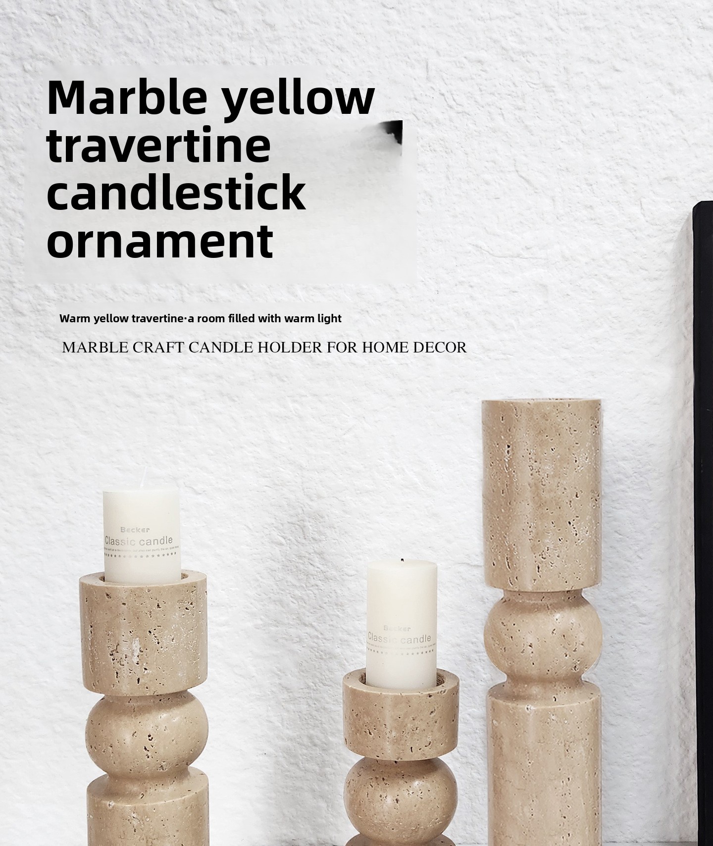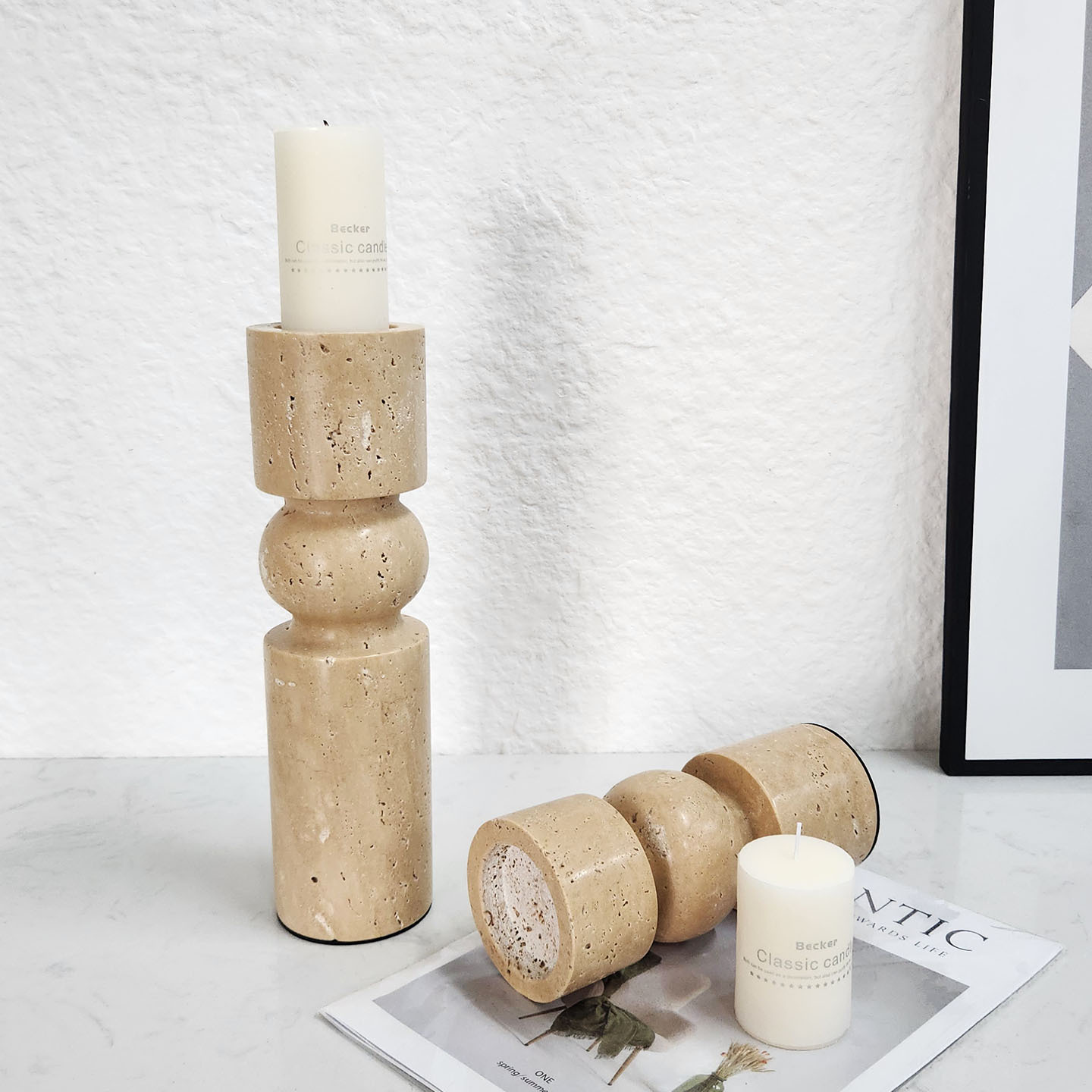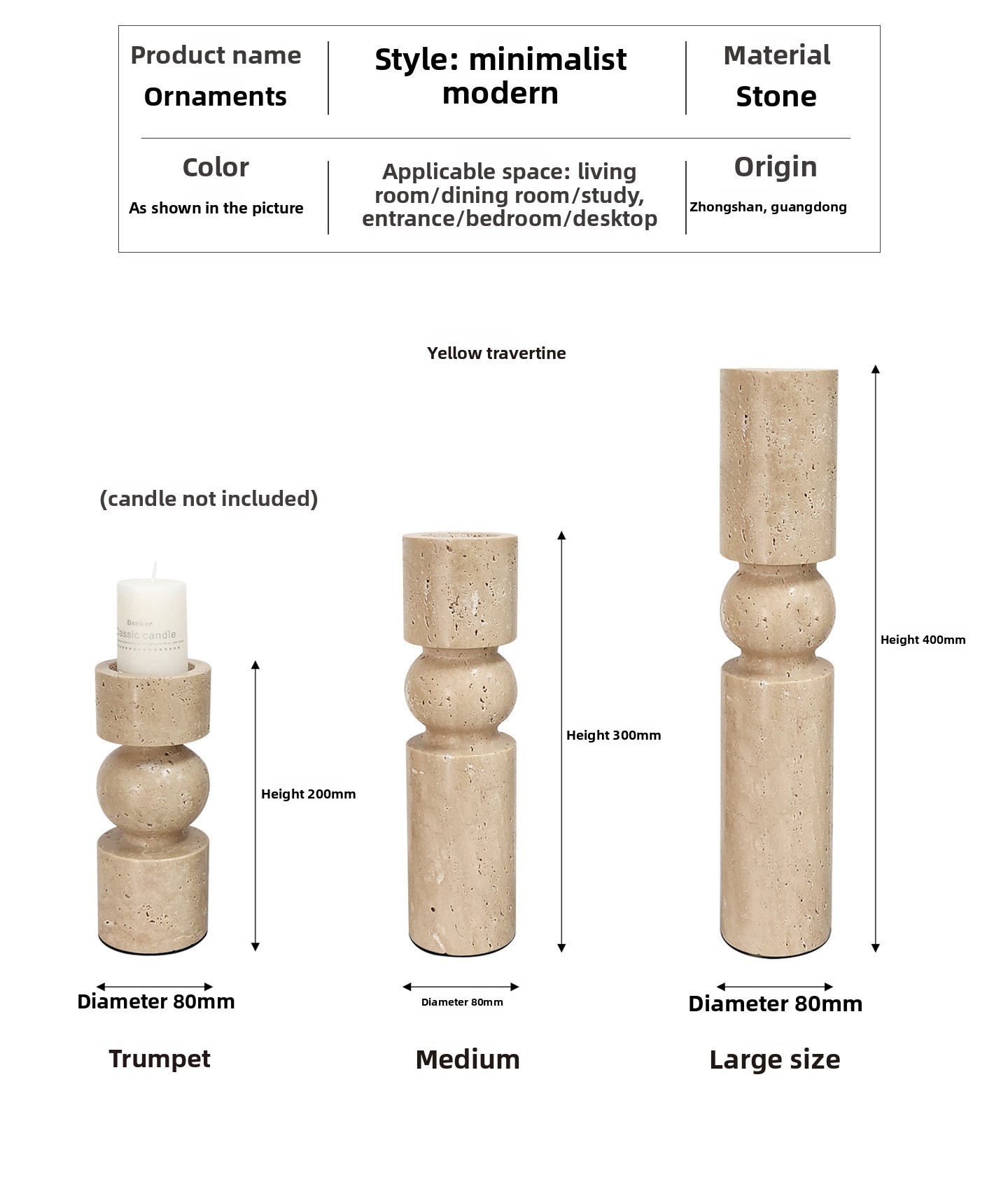 X024a yellow travertine small size 80*80*200mm, X024b yellow travertine medium size 80*80*300mm, X024c yellow travertine large size 80*80*400mm, Candle two-piece set d5cm*h7.5/10cm