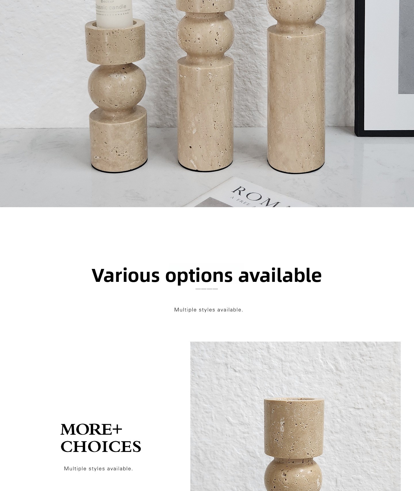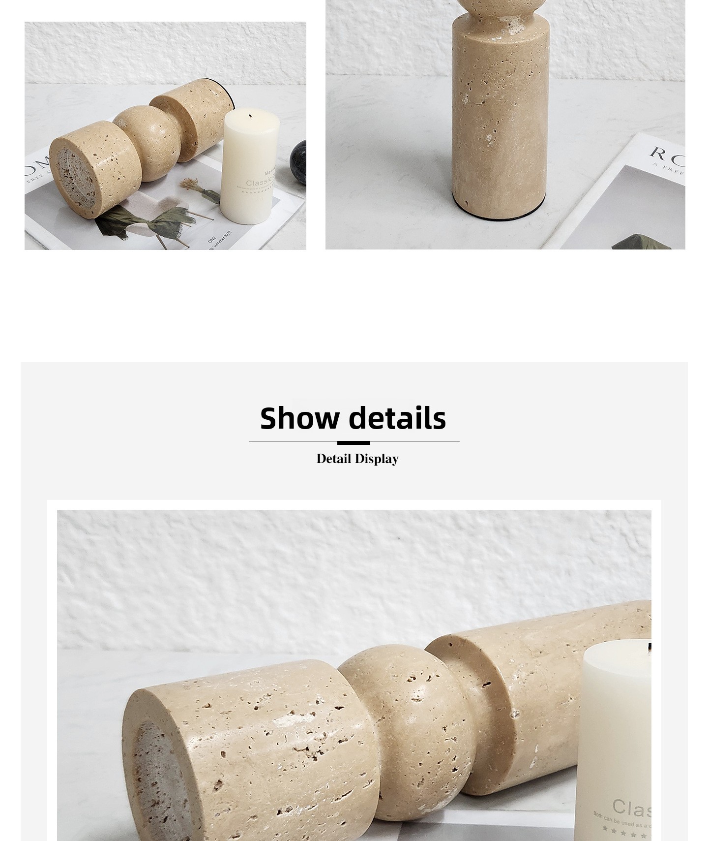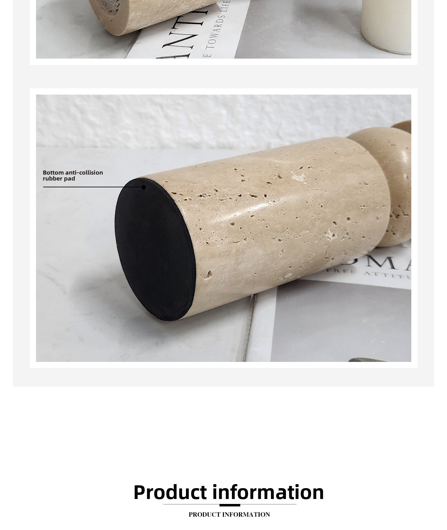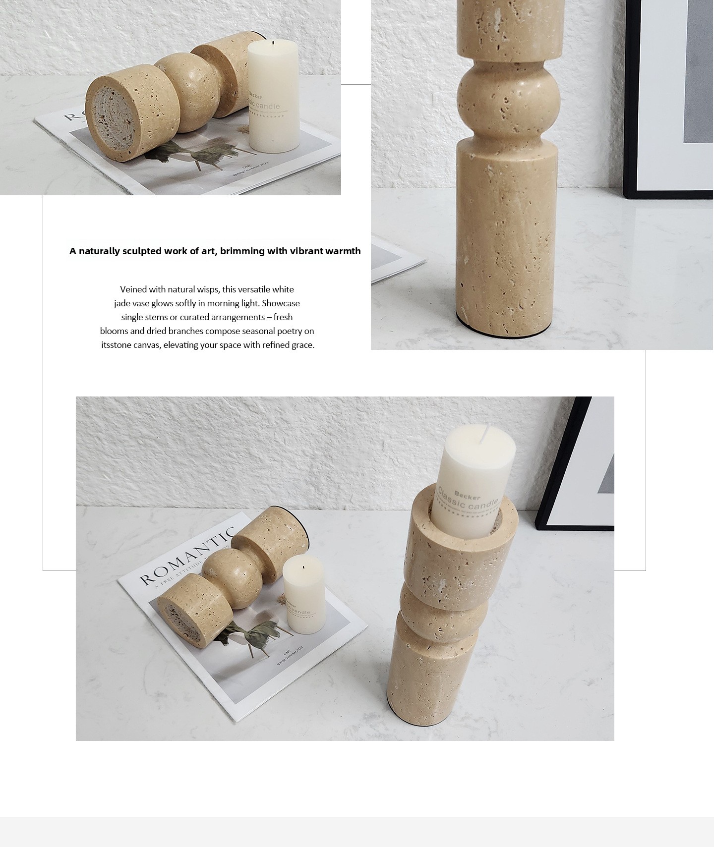 X024a yellow travertine small size 80*80*200mm, X024b yellow travertine medium size 80*80*300mm, X024c yellow travertine large size 80*80*400mm, Candle two-piece set d5cm*h7.5/10cm