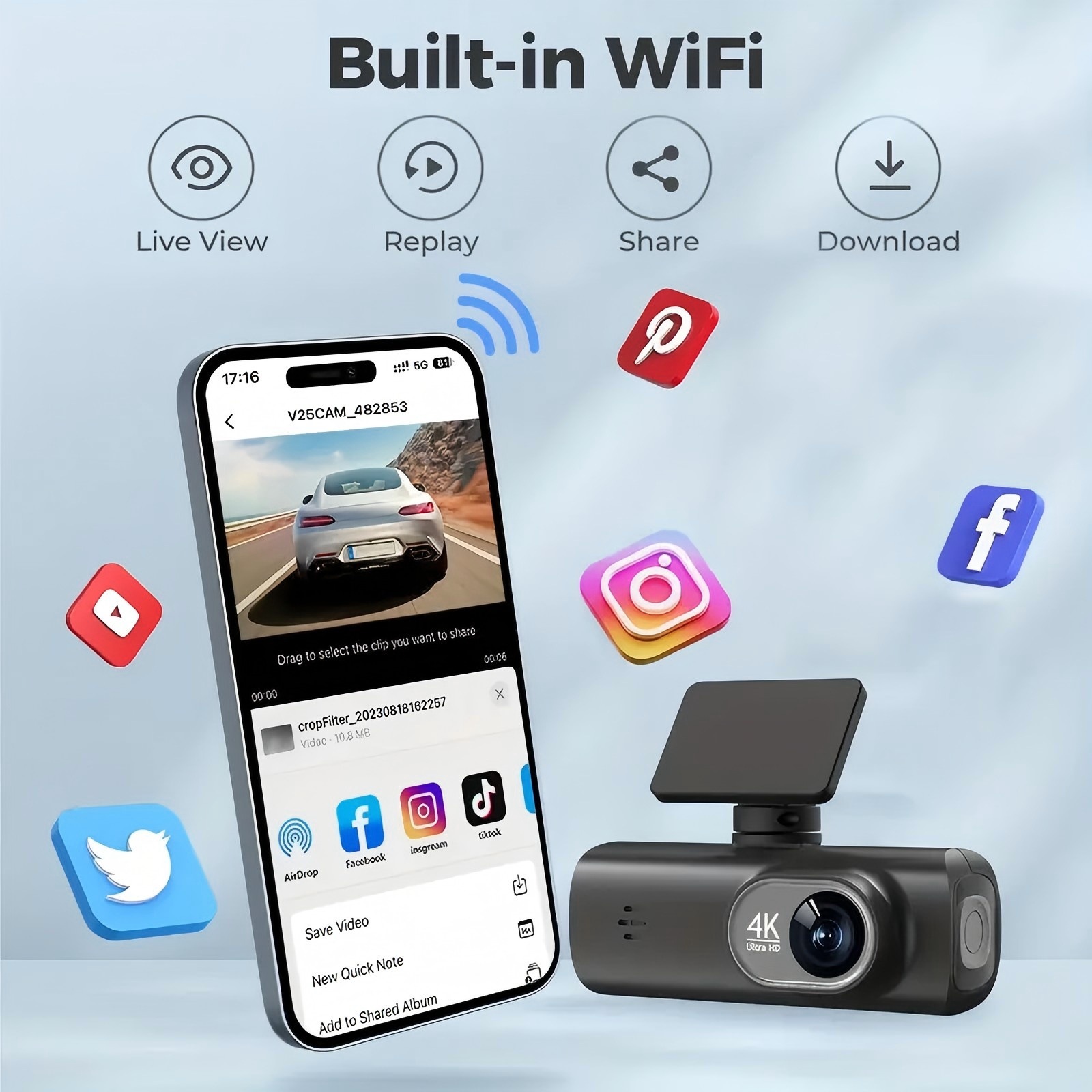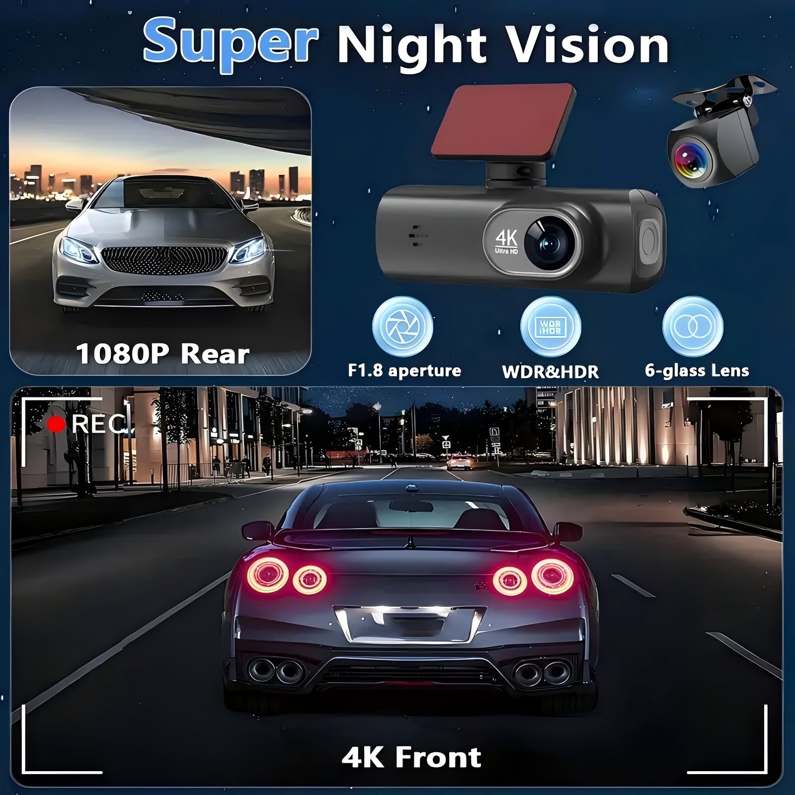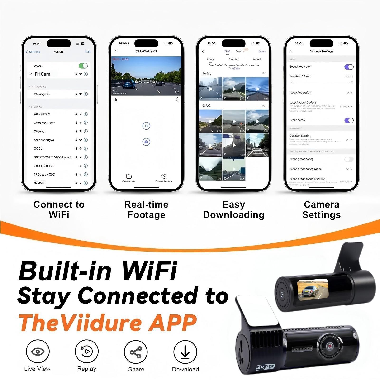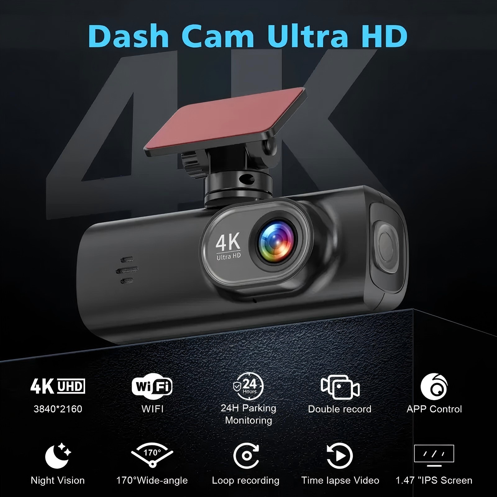 4K Ultra HD: Delivers exceptional video clarity with 2160p resolution for detailed front and rear recording.