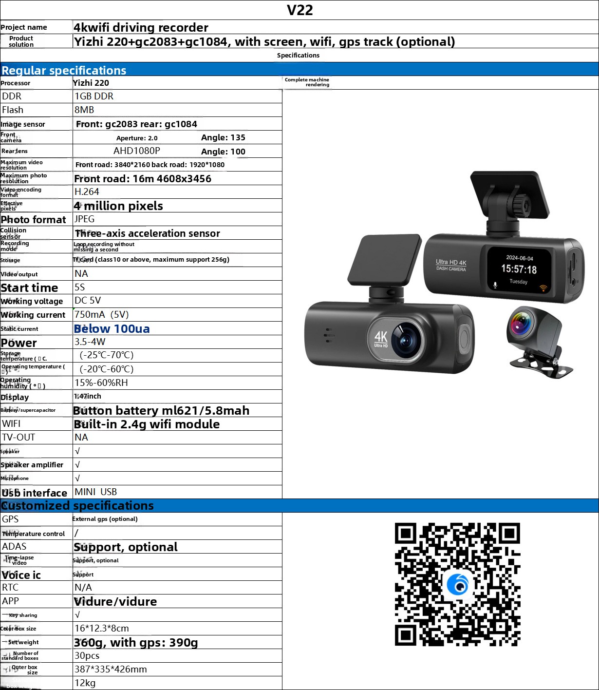 Video Resolution: Front camera 3840×2160, Rear camera 1920×1080