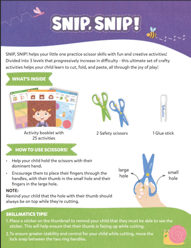Scissor Skills Development: Enhances children’s fine motor skills and hand-eye coordination through paper cutting activities.