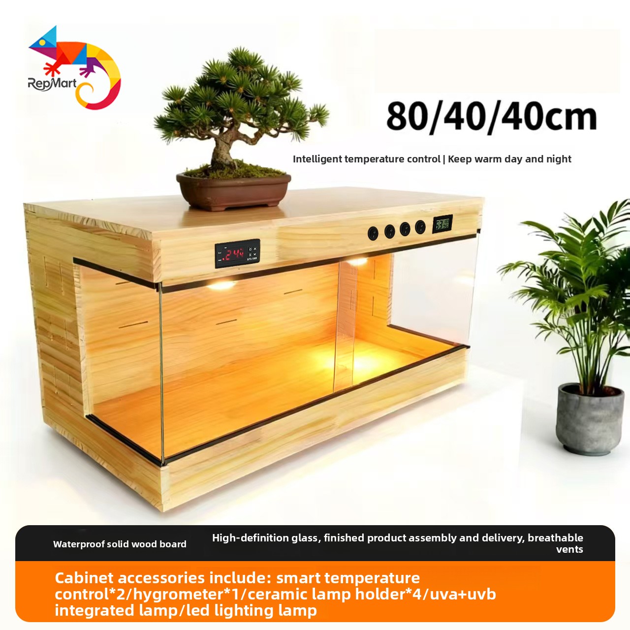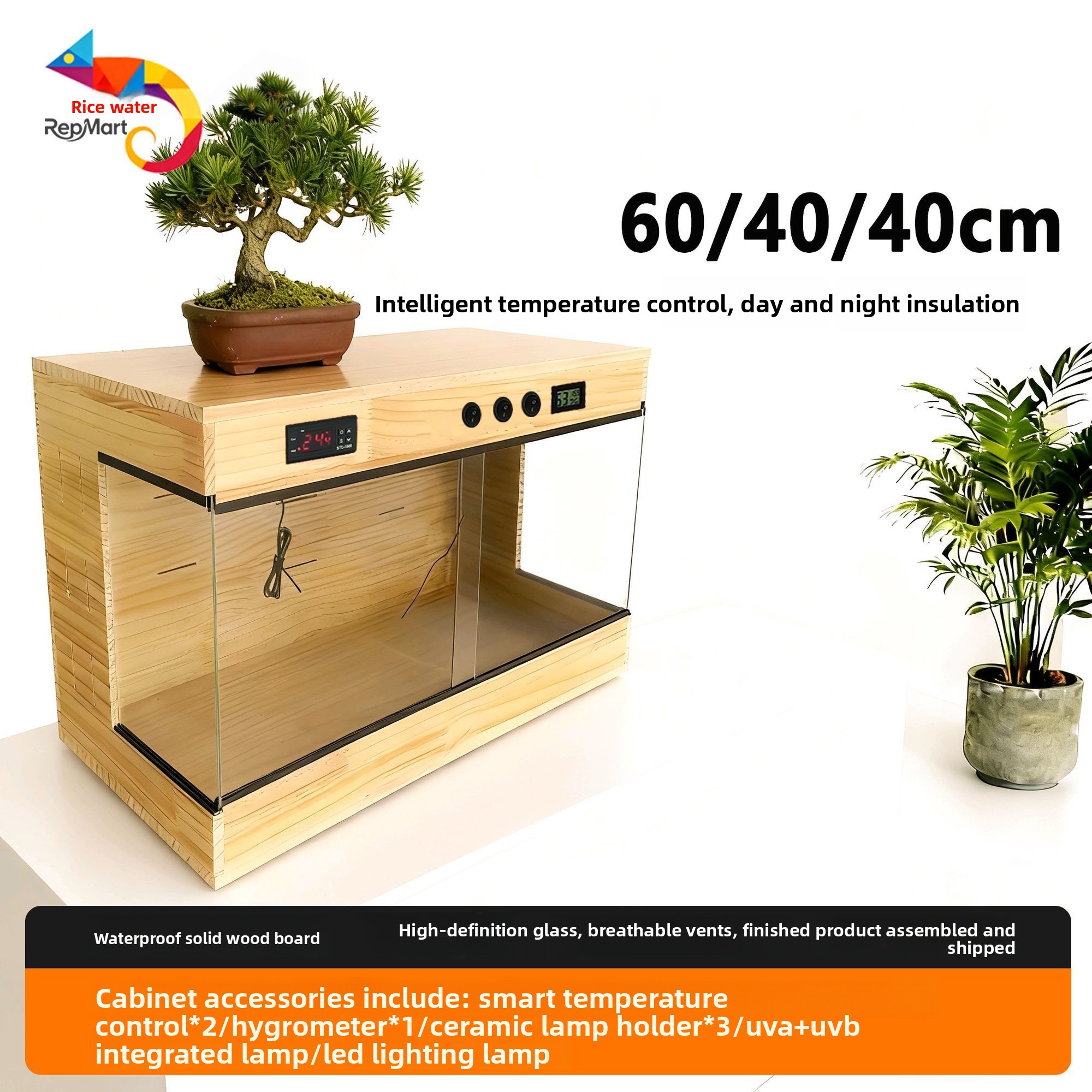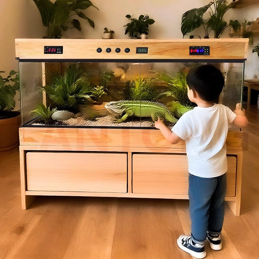 Solid Wood Construction: Durable and natural wooden enclosure for reptile habitats.