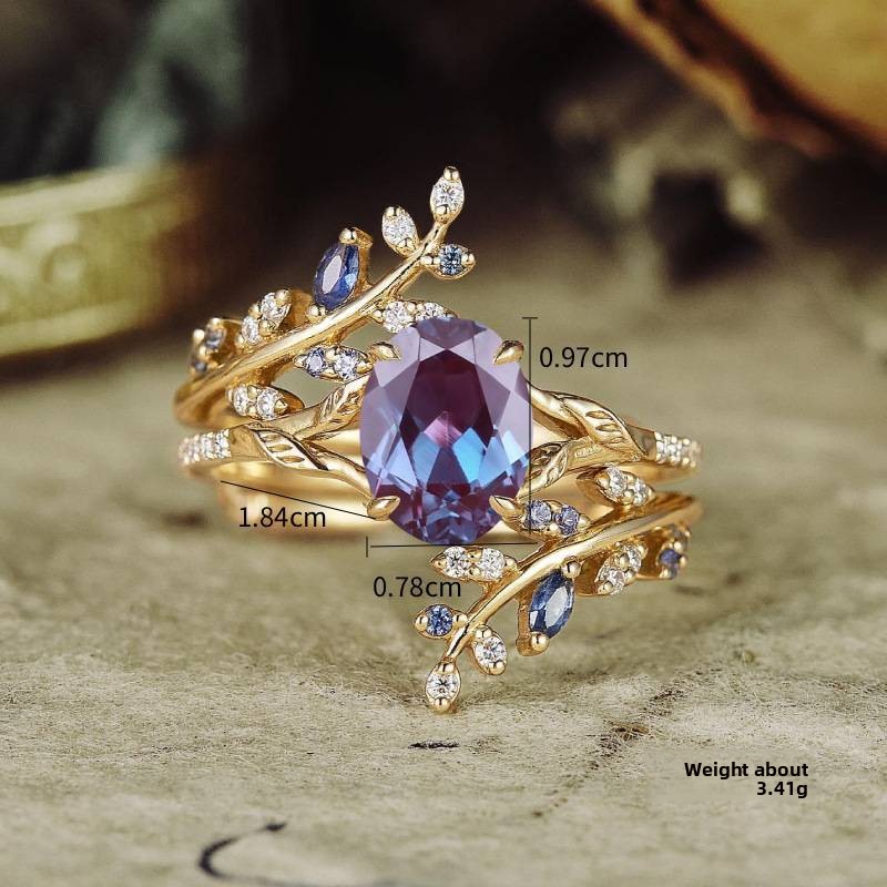 Creative Design: Features a unique leaf-inspired pattern with colorful zircon inlays for an elegant and nature-