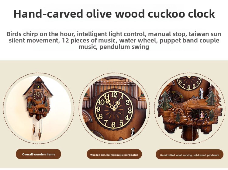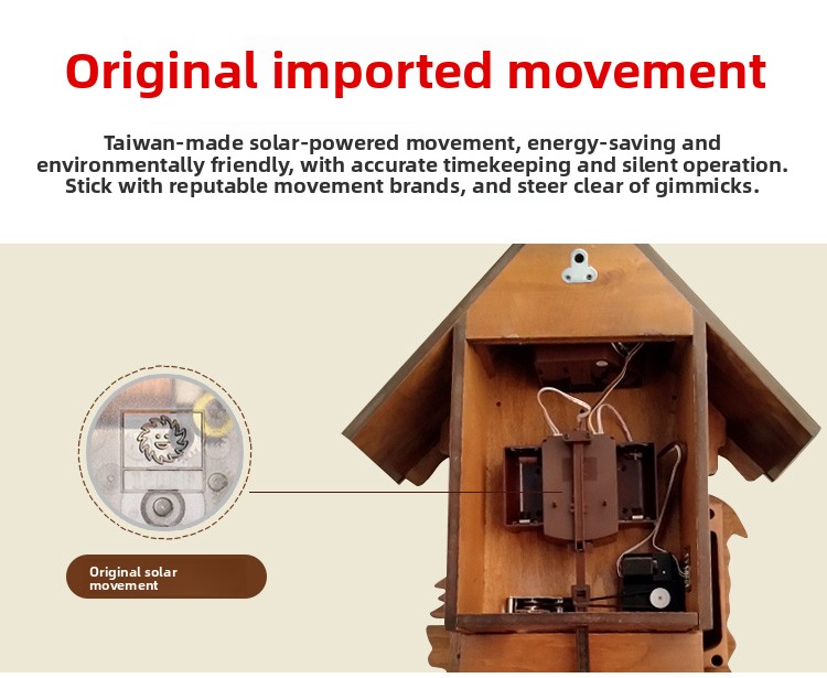 Musical Feature: Cuckoo bird sound announces each hour for charming ambiance.