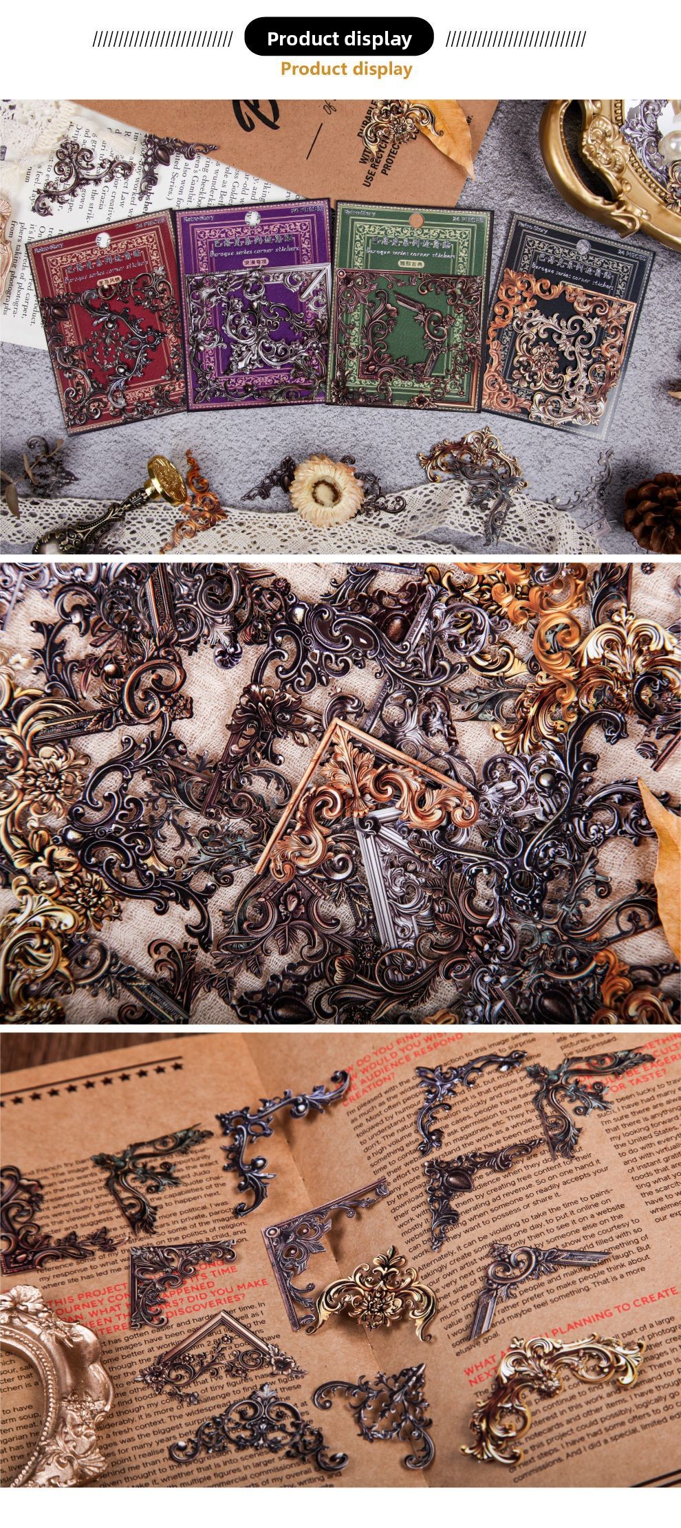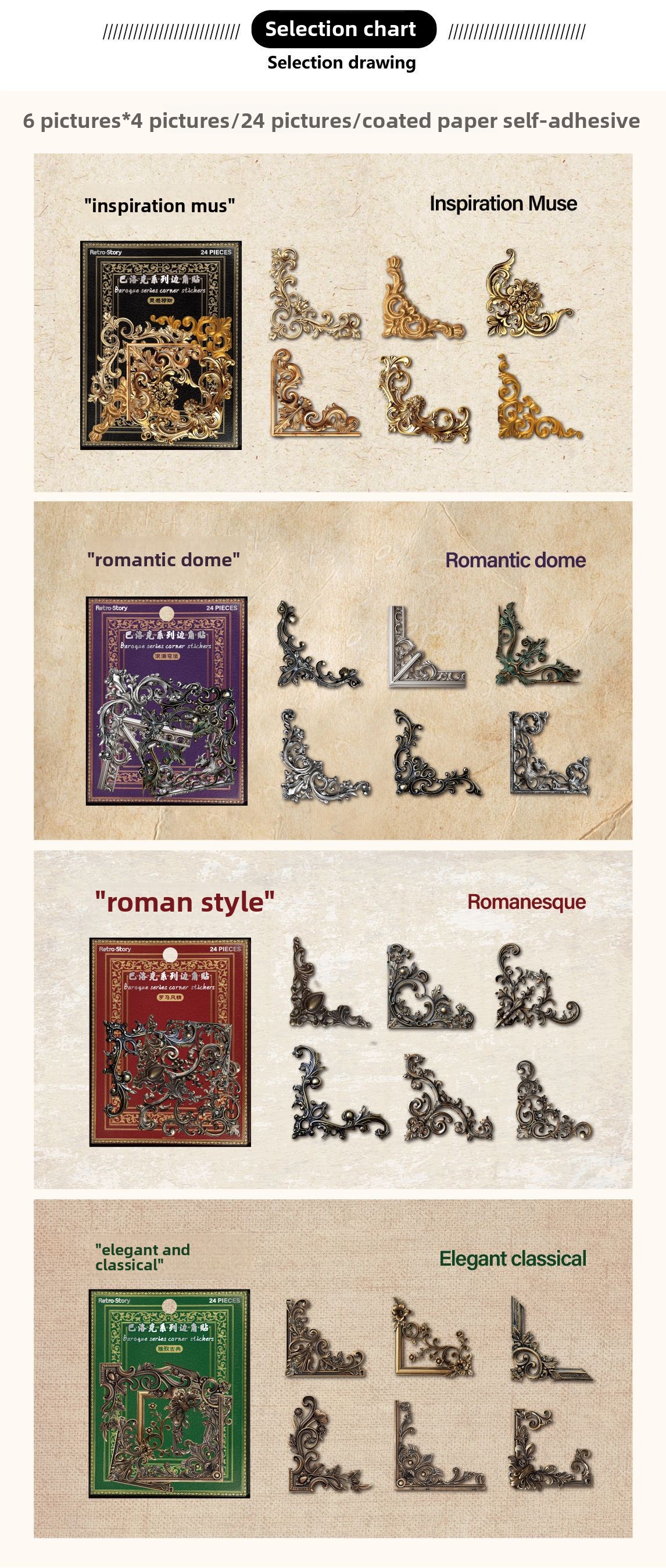 Retro Design: Baroque-inspired corner stickers with vintage aesthetics for decorative enhancement