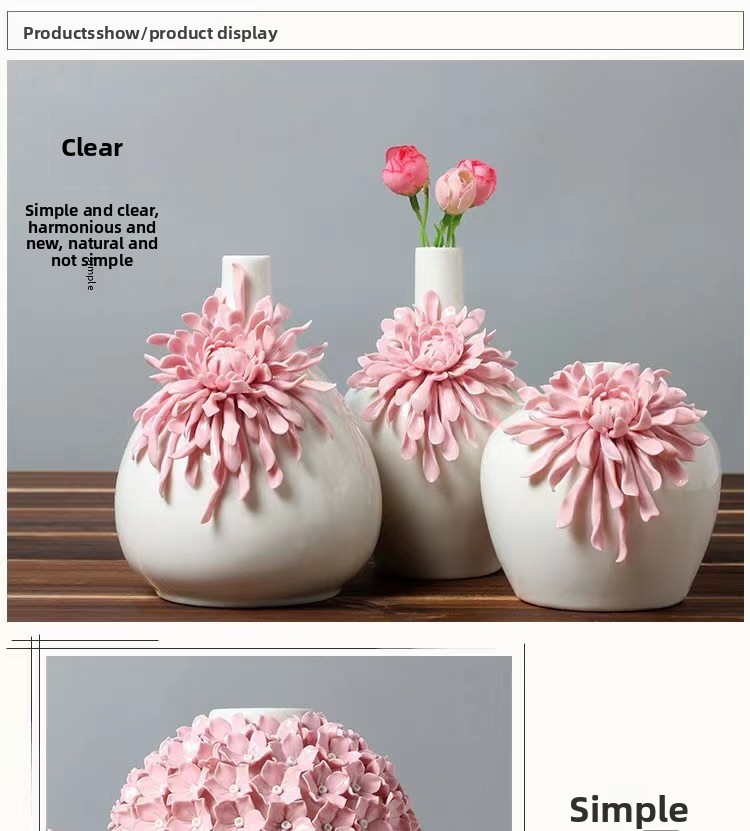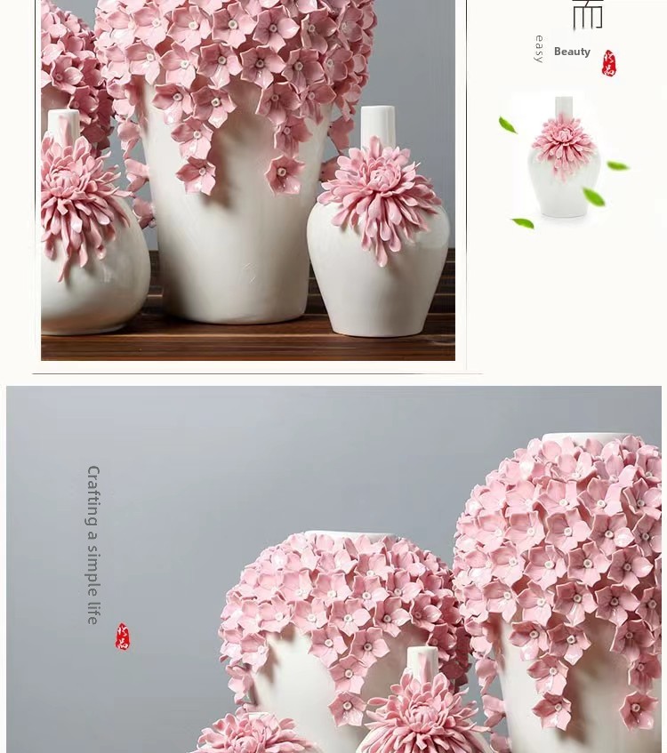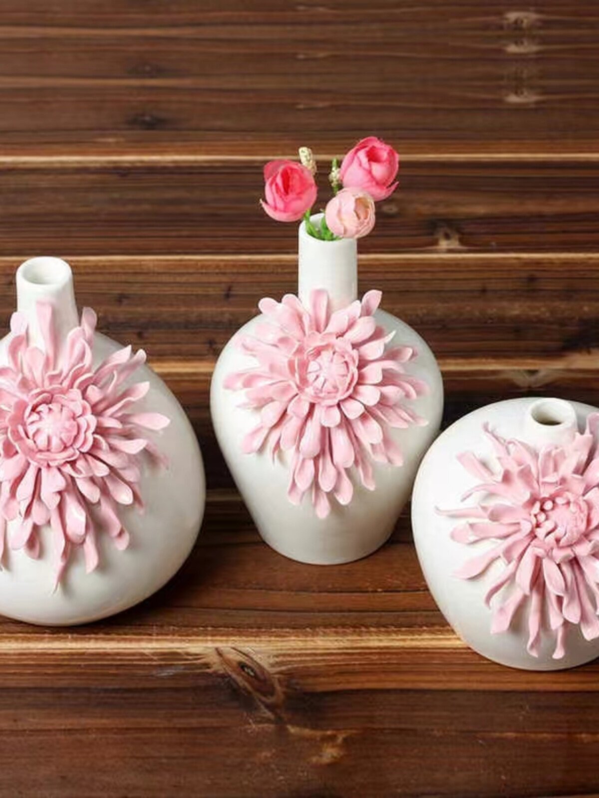 Embossed Design: Features delicate handcrafted porcelain flowers with detailed texture