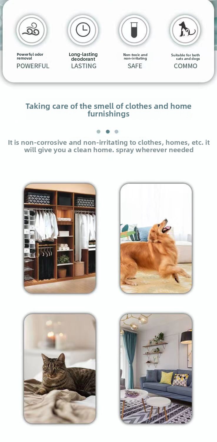 Odor Elimination: Effectively neutralizes pet urine and feces odors