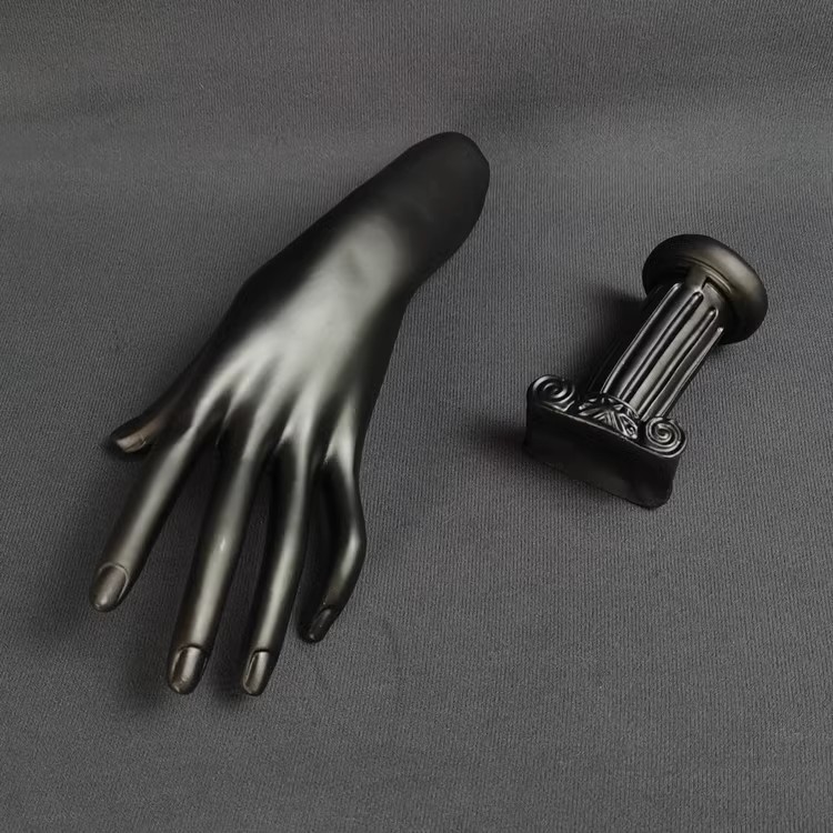 Design Aesthetic: Features a Roman column base and elegant hand shape for sophisticated display