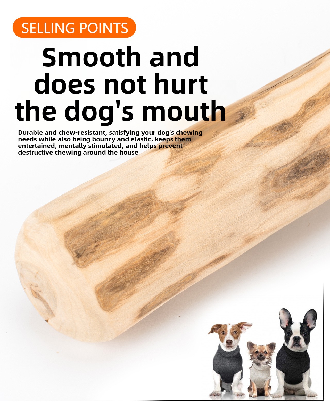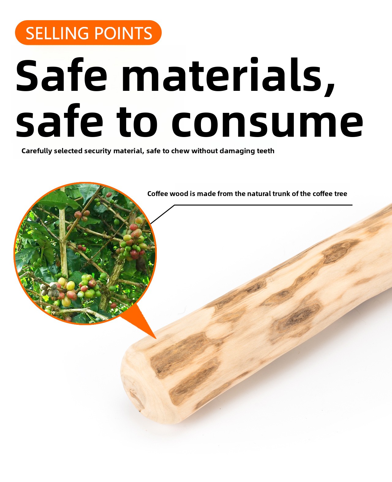 Natural Material: Made from sustainable coffee wood, providing a safe and eco-friendly chewing solution for dogs.