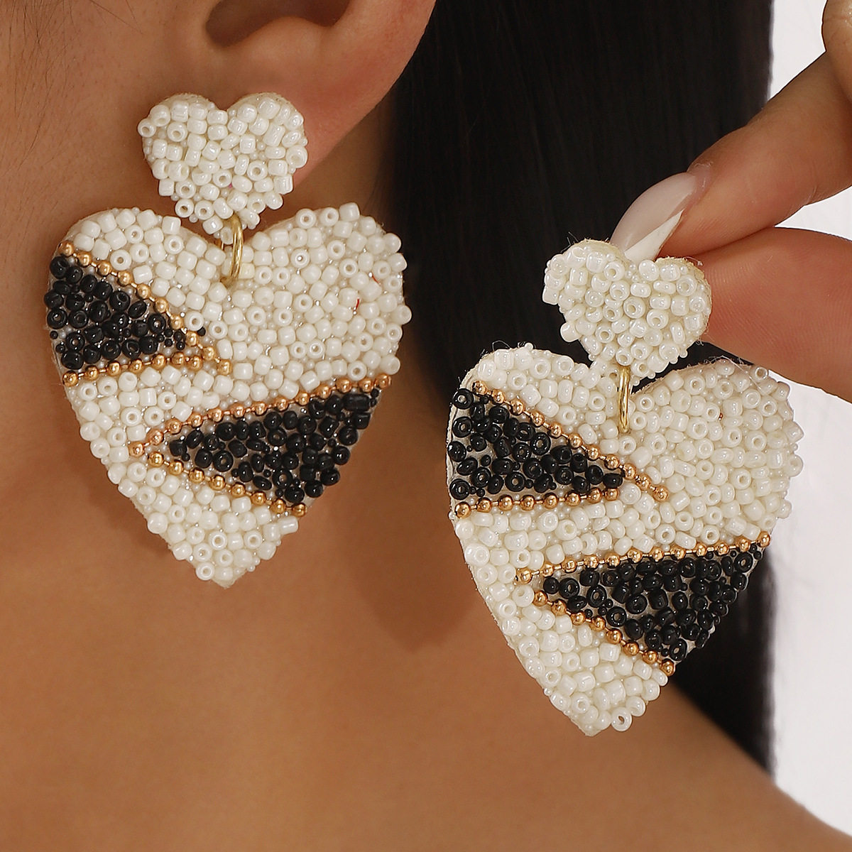 Pattern: Heart-shaped design with seed bead accents