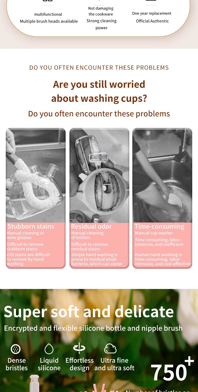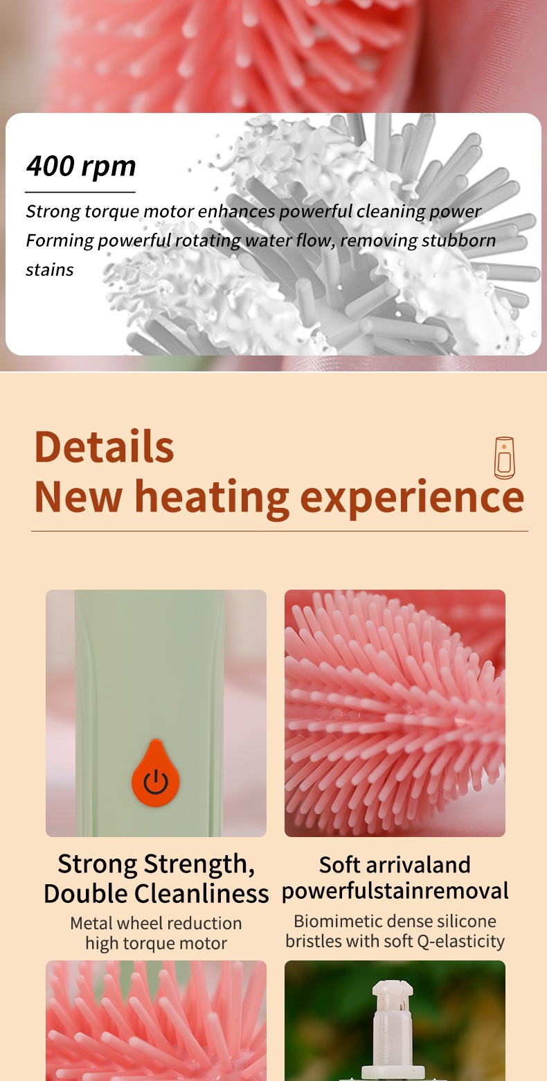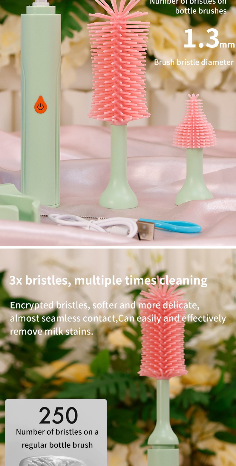 Multifunctional Design: Cleans bottle heads, nipples, and straws efficiently with specialized brush attachments