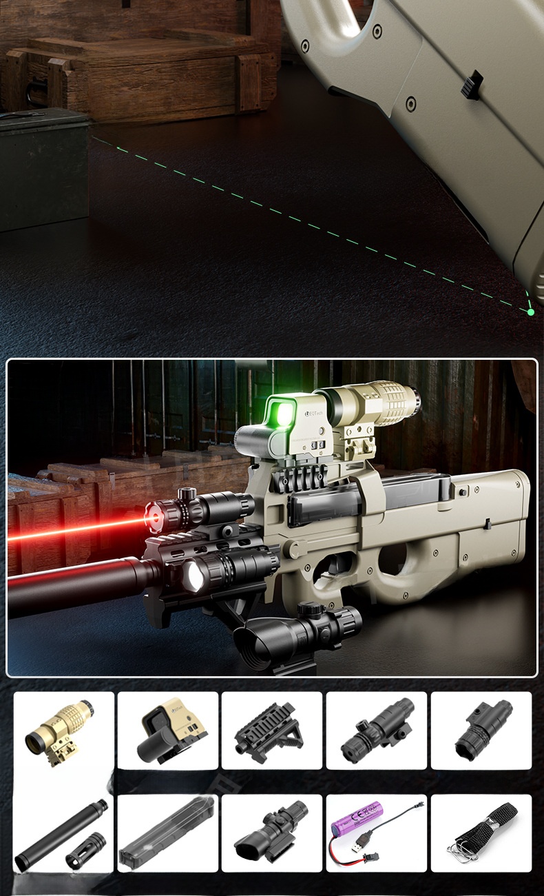 Multiple Configurations: Optional accessories including holographic sights, flashlights, and tactical gear