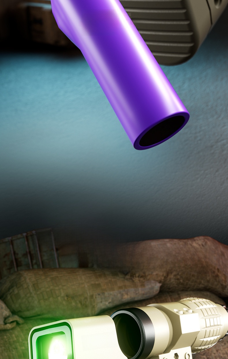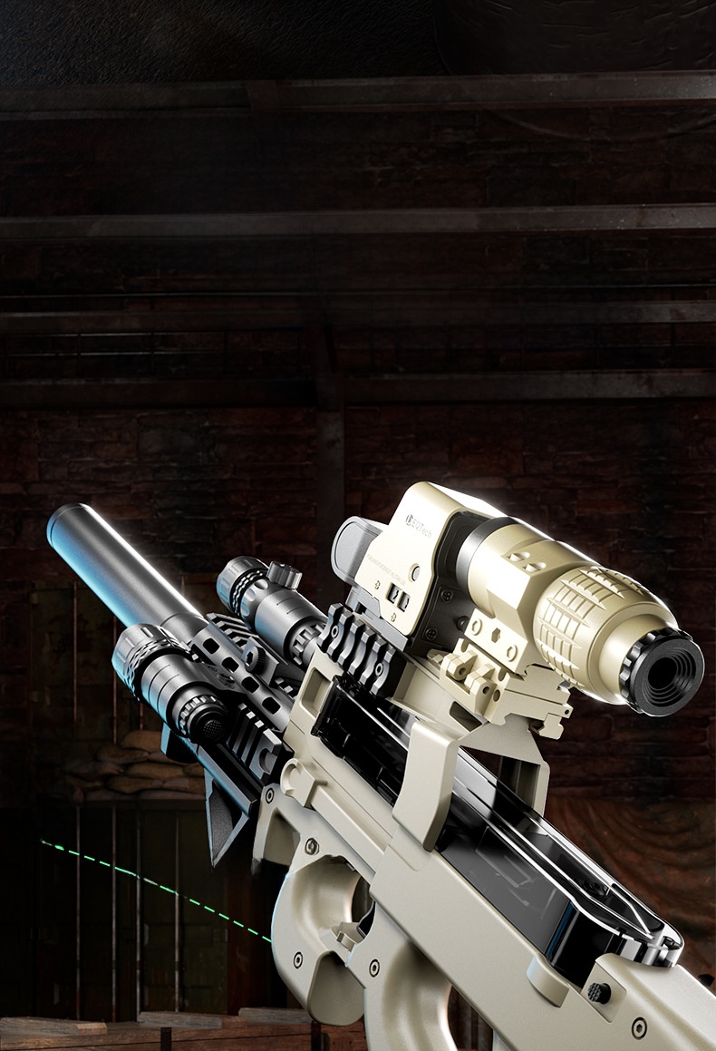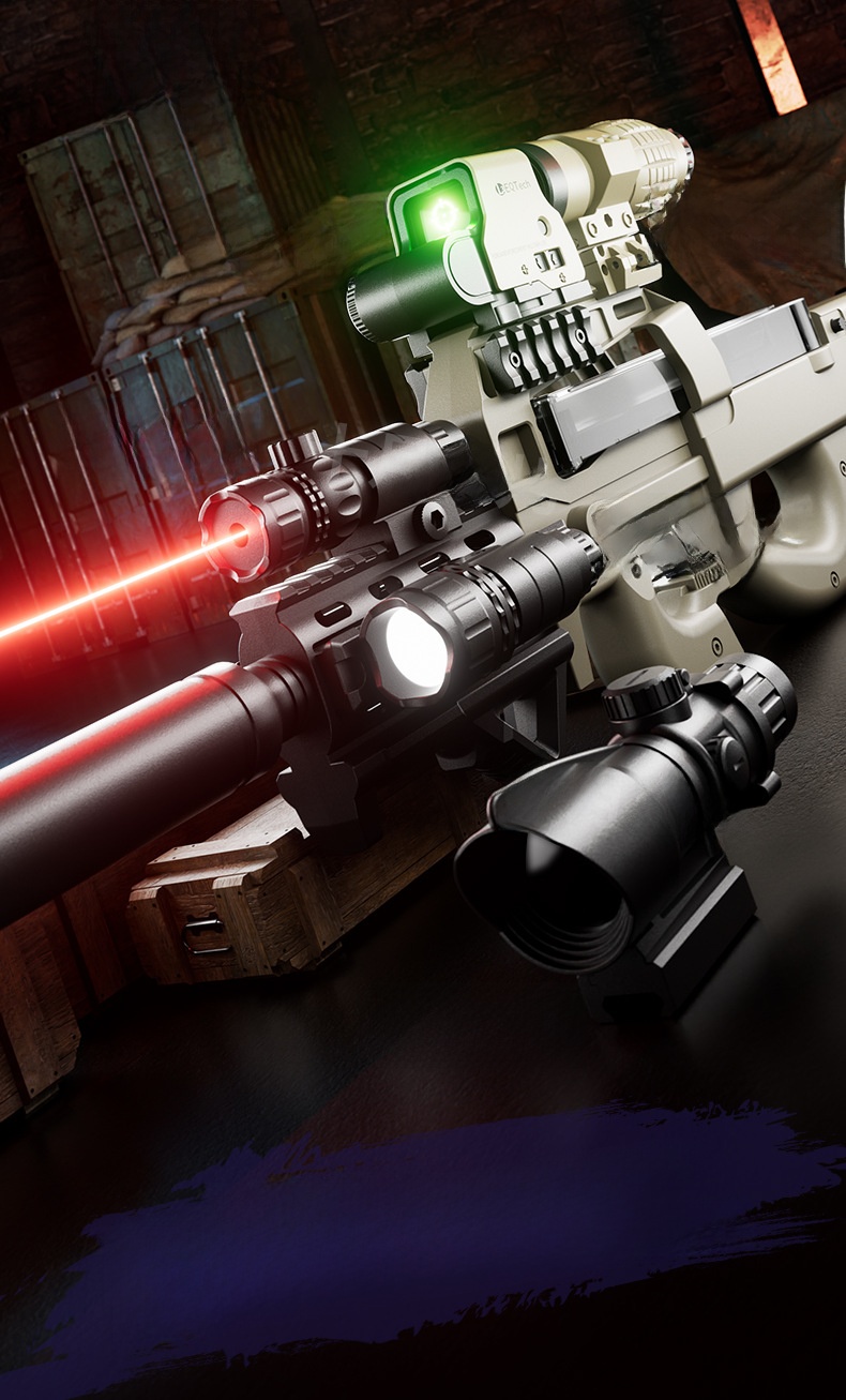 Multiple Configurations: Optional accessories including holographic sights, flashlights, and tactical gear