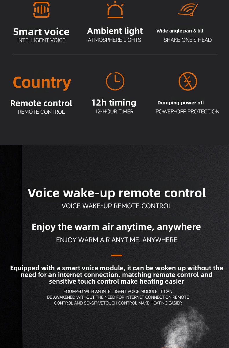 Safety Features: Overheat protection, tip-over power cutoff, and anti-scald grille