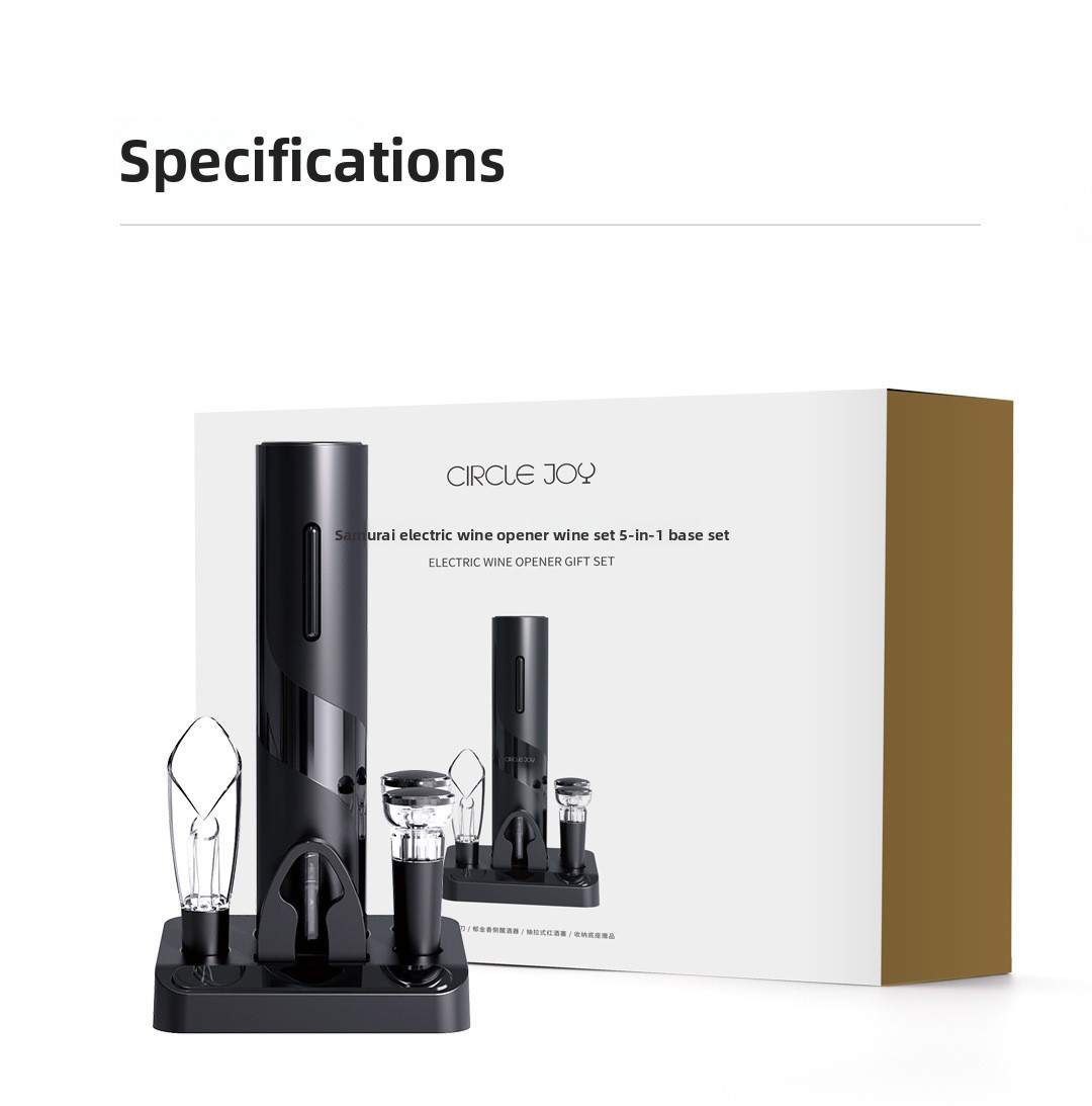 Multifunctional Design: 5-in-1 set includes foil cutter, corkscrew, drip ring, and base for comprehensive wine service.