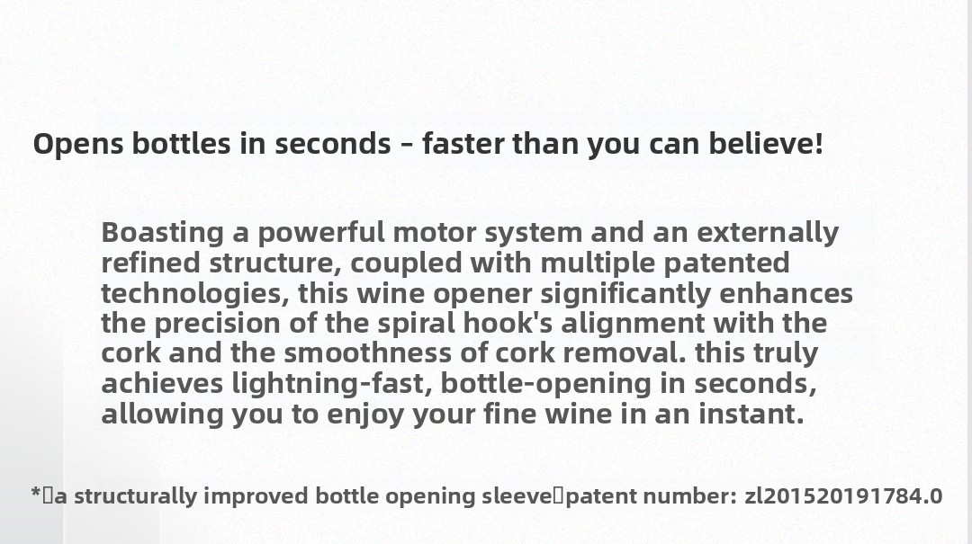Electric Operation: Automated bottle opening with simple button press for effortless uncorking.
