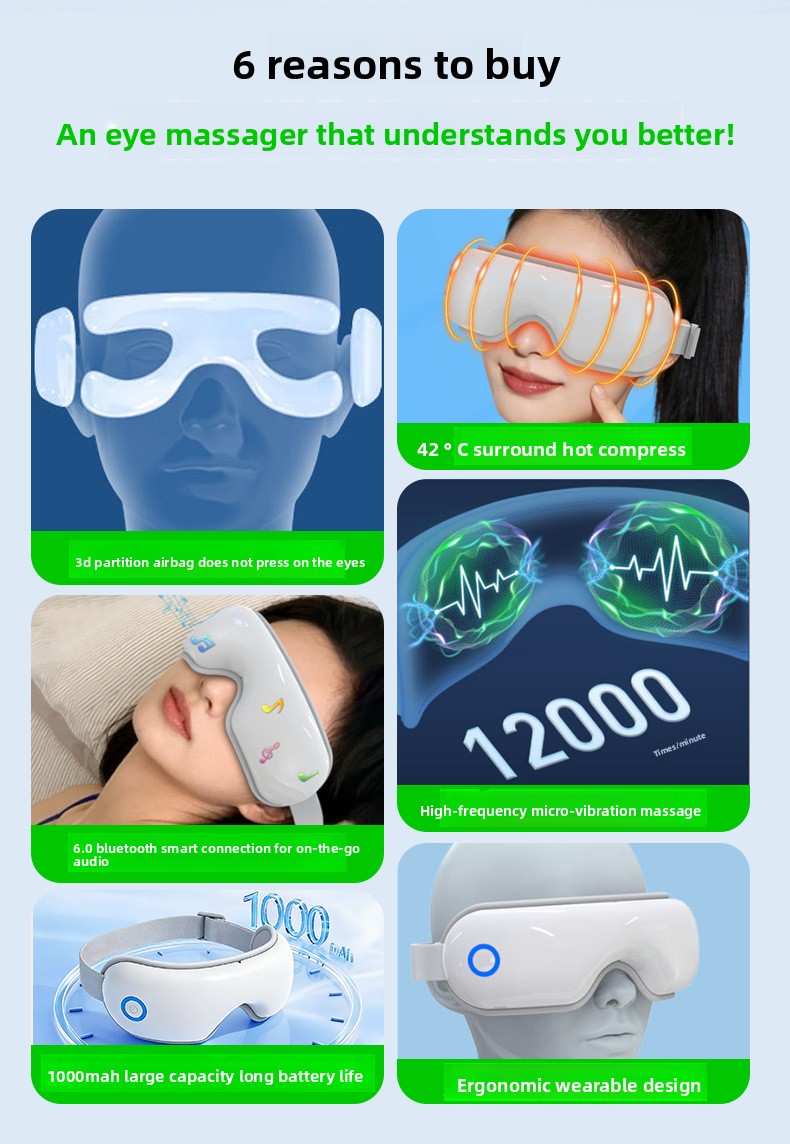 Air Pressure Massage: Multi-point airbag compression technology for effective eye relaxation.