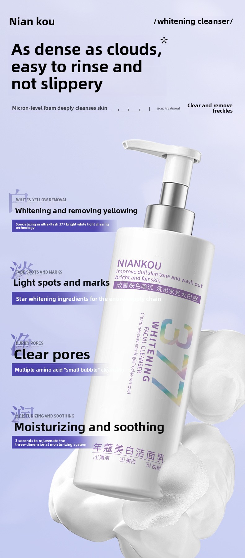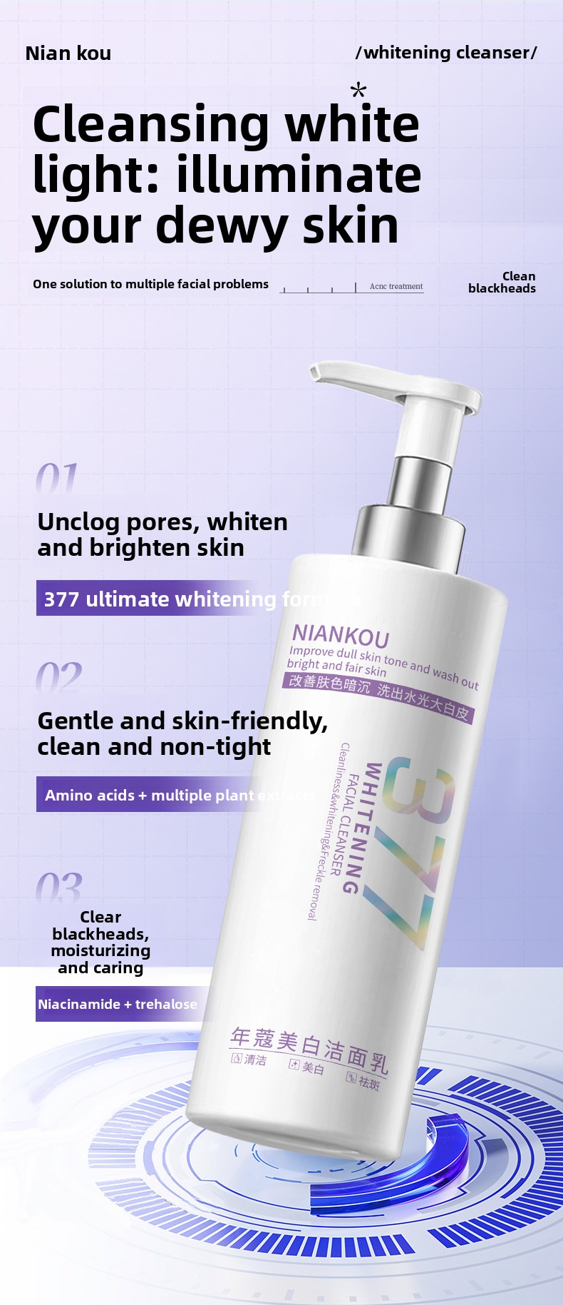 Nian kou purple laser bottle 377 facial cleanser