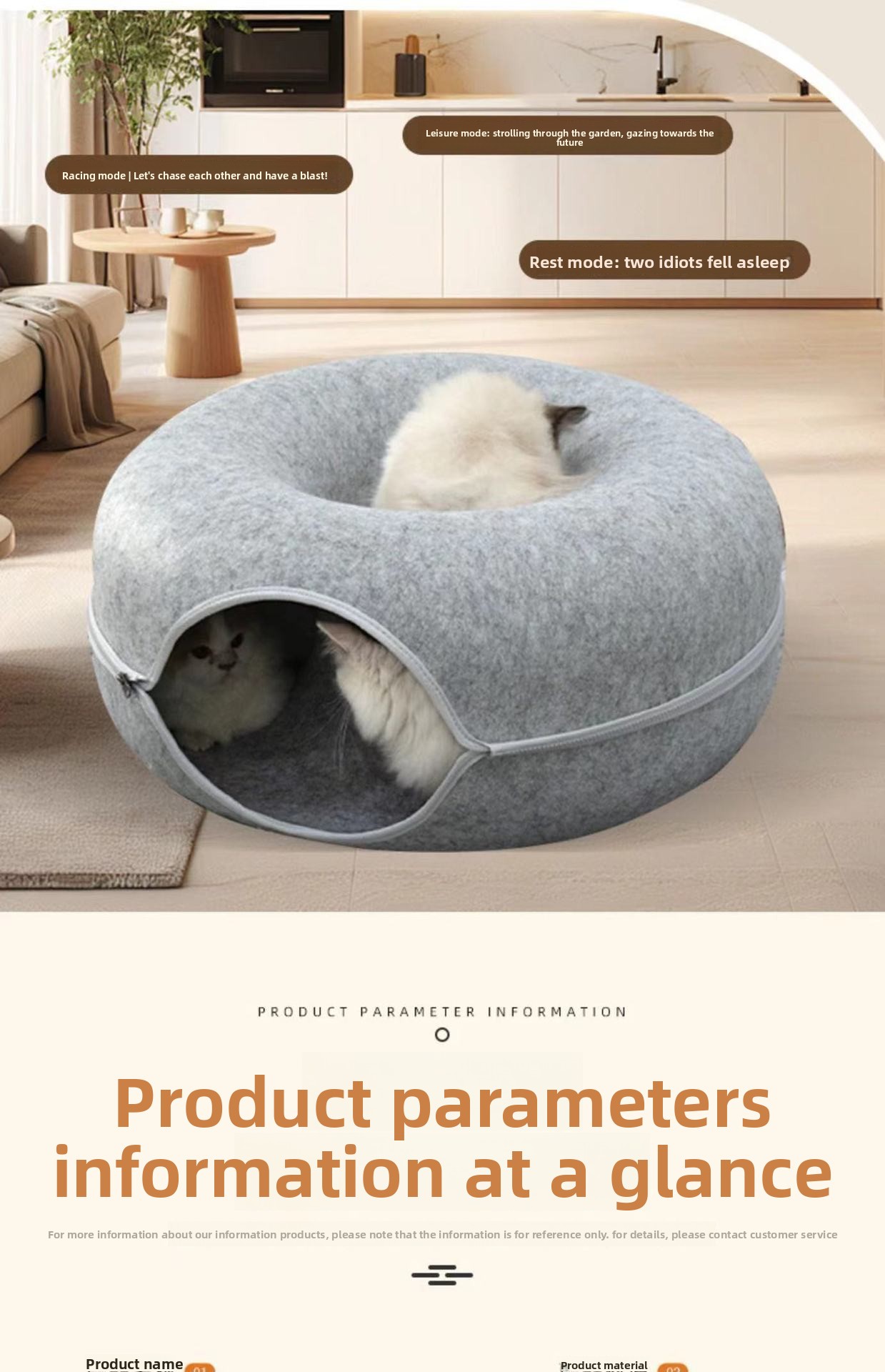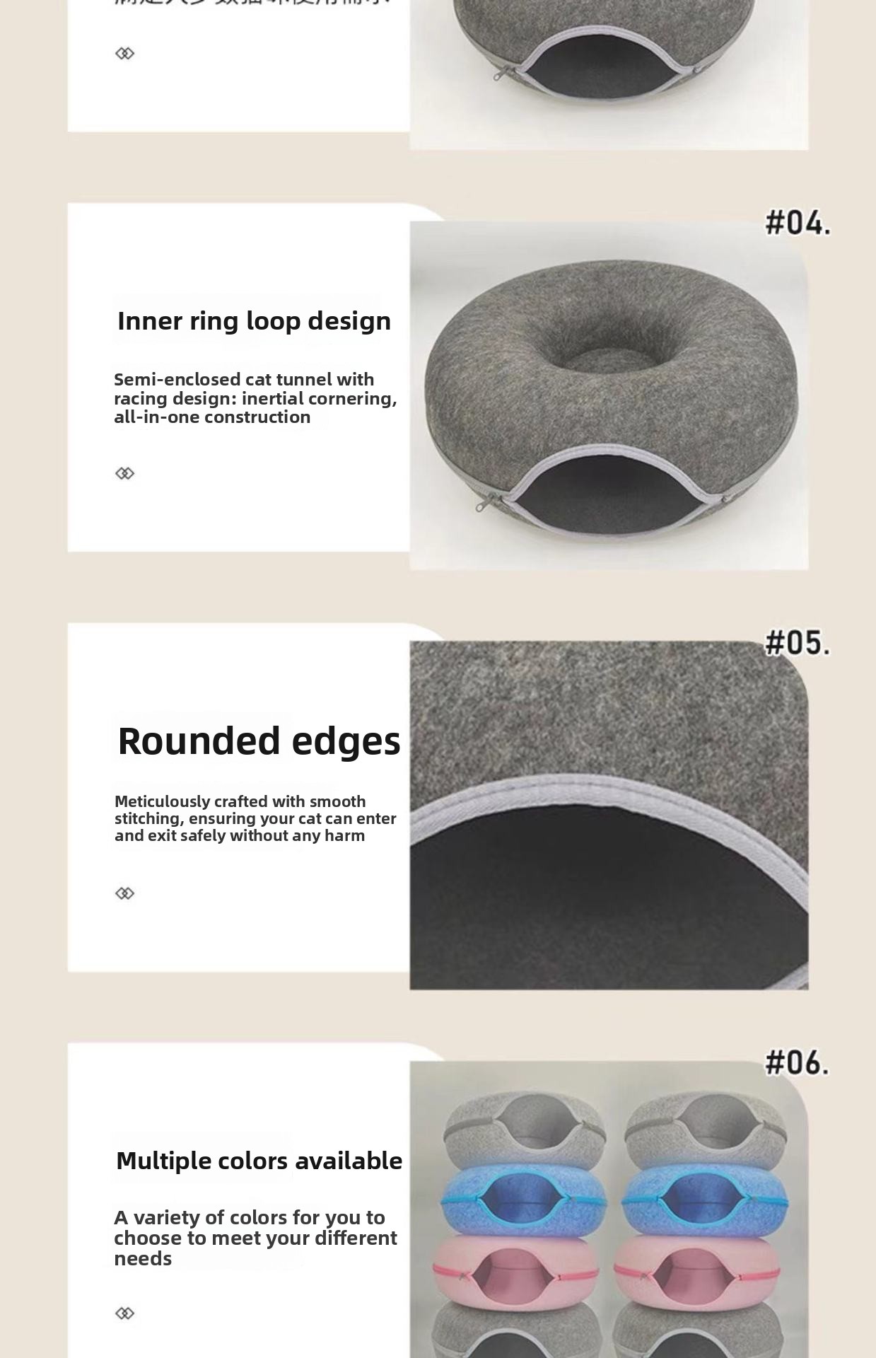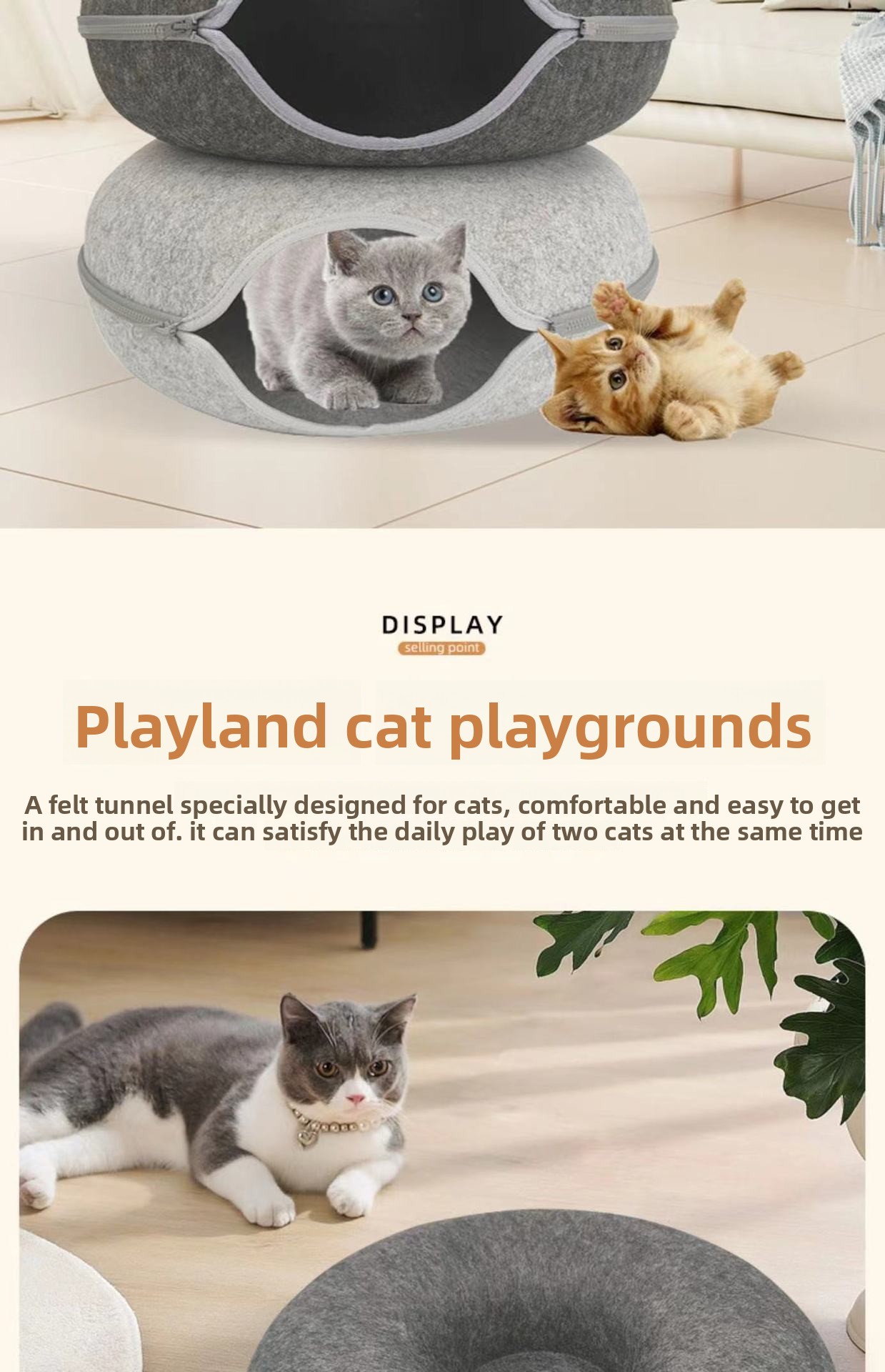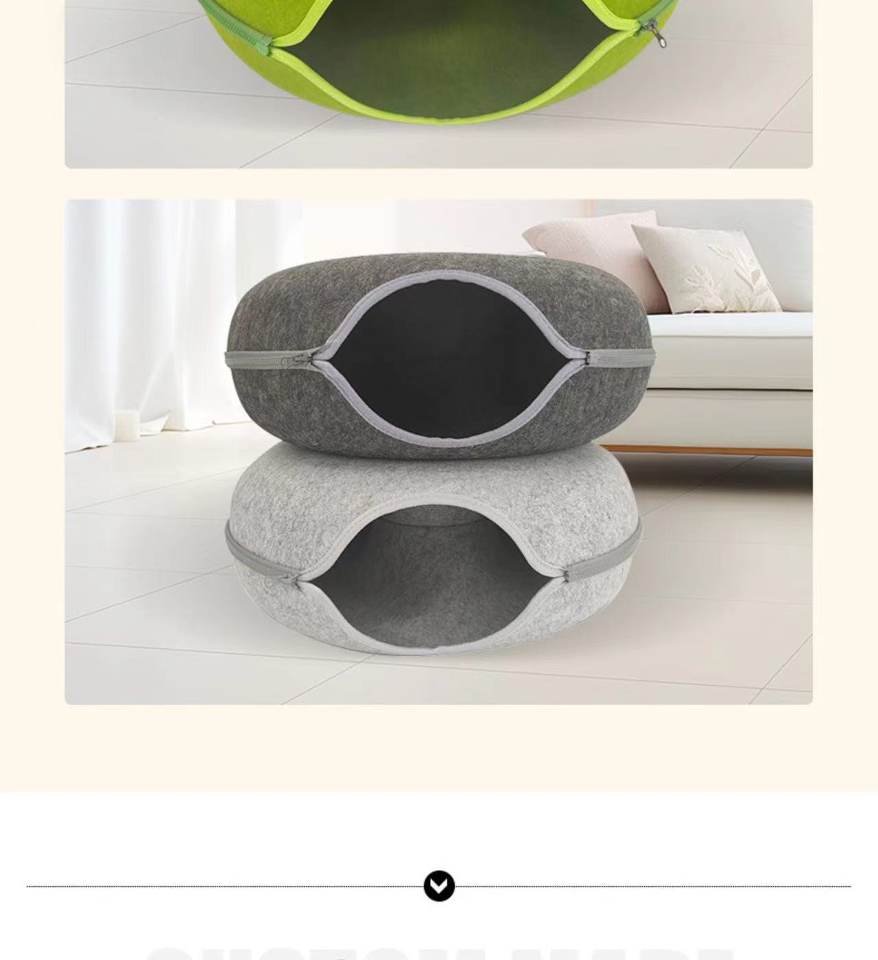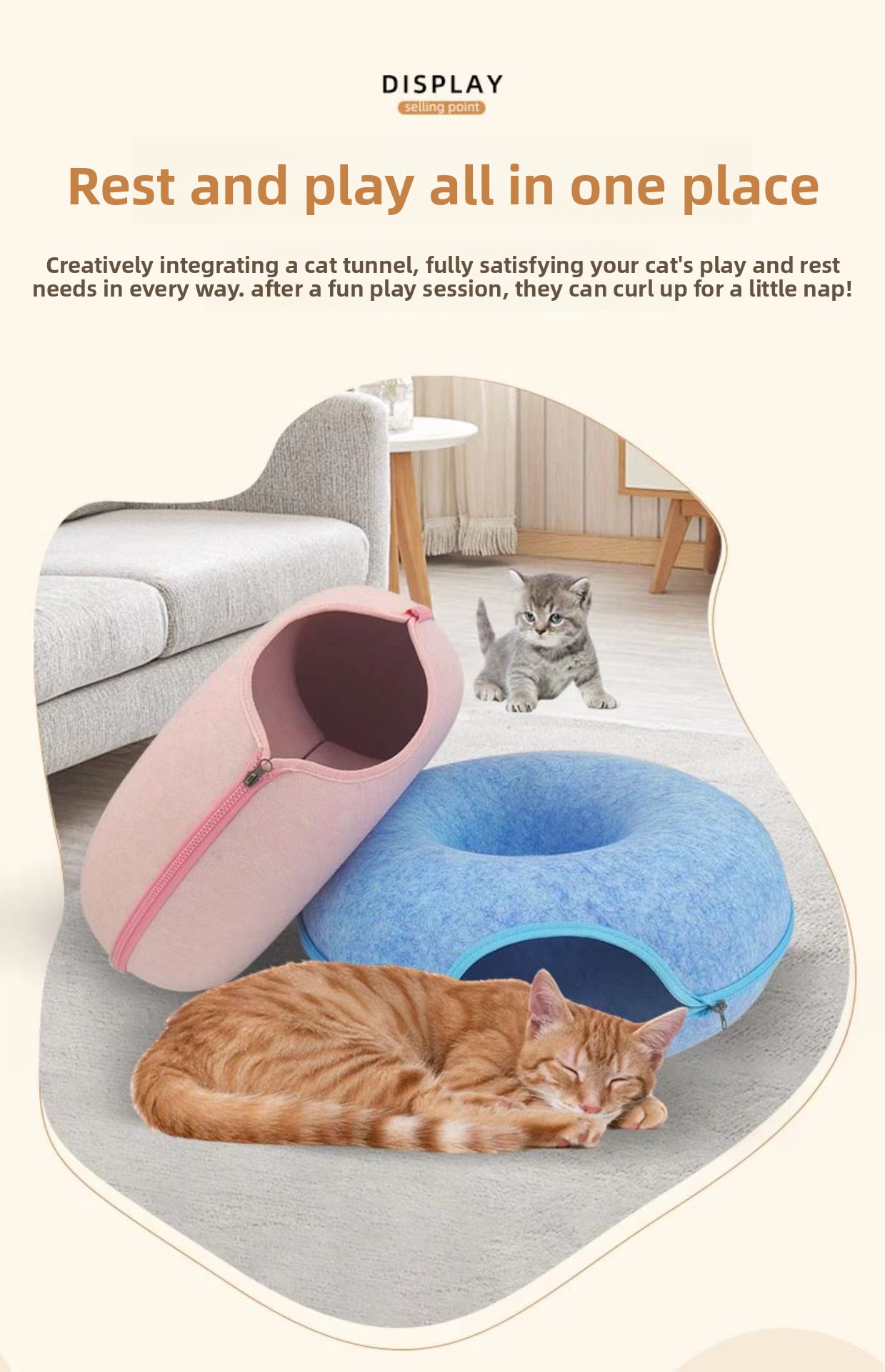 Double Layer Design: Provides cats with both a cozy sleeping area and an interactive tunnel space.