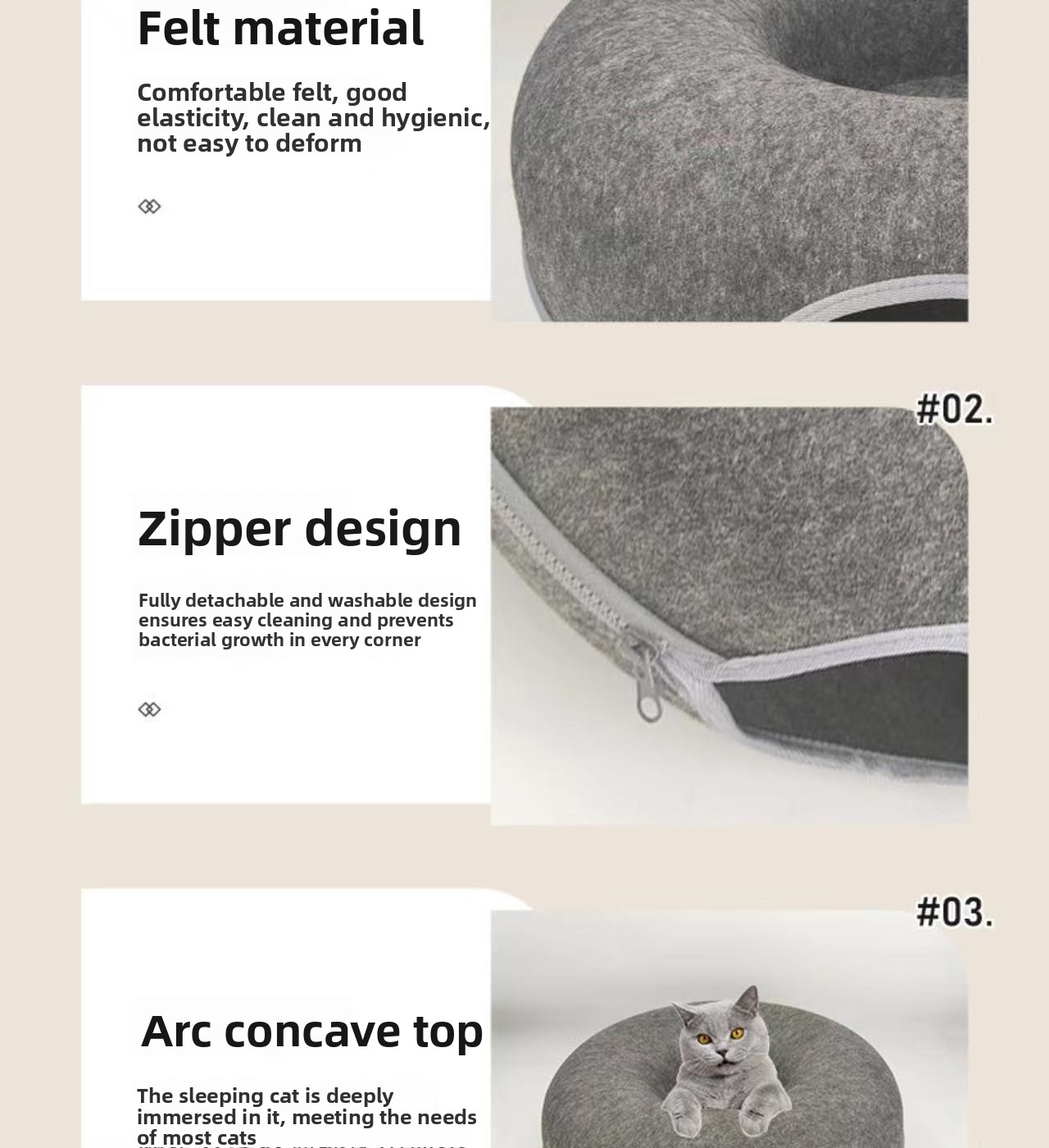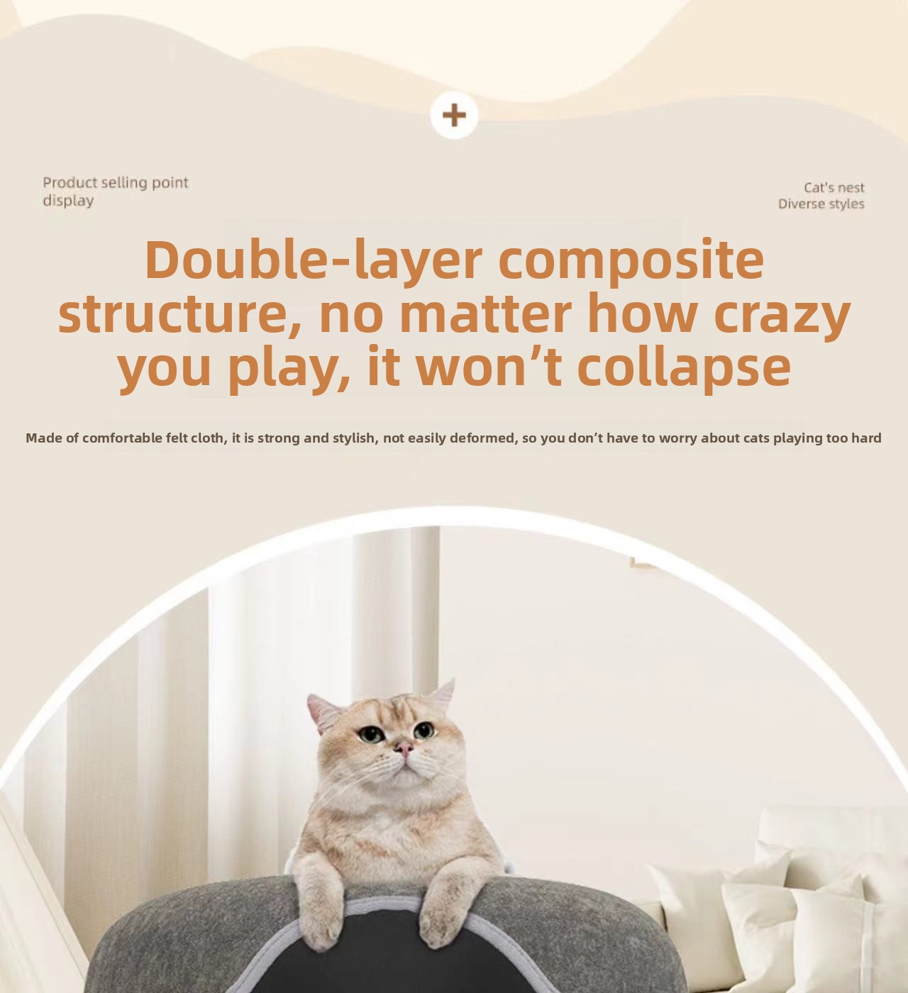 Soft Felt Material: Offers comfort and warmth, ensuring a snug environment for cats.