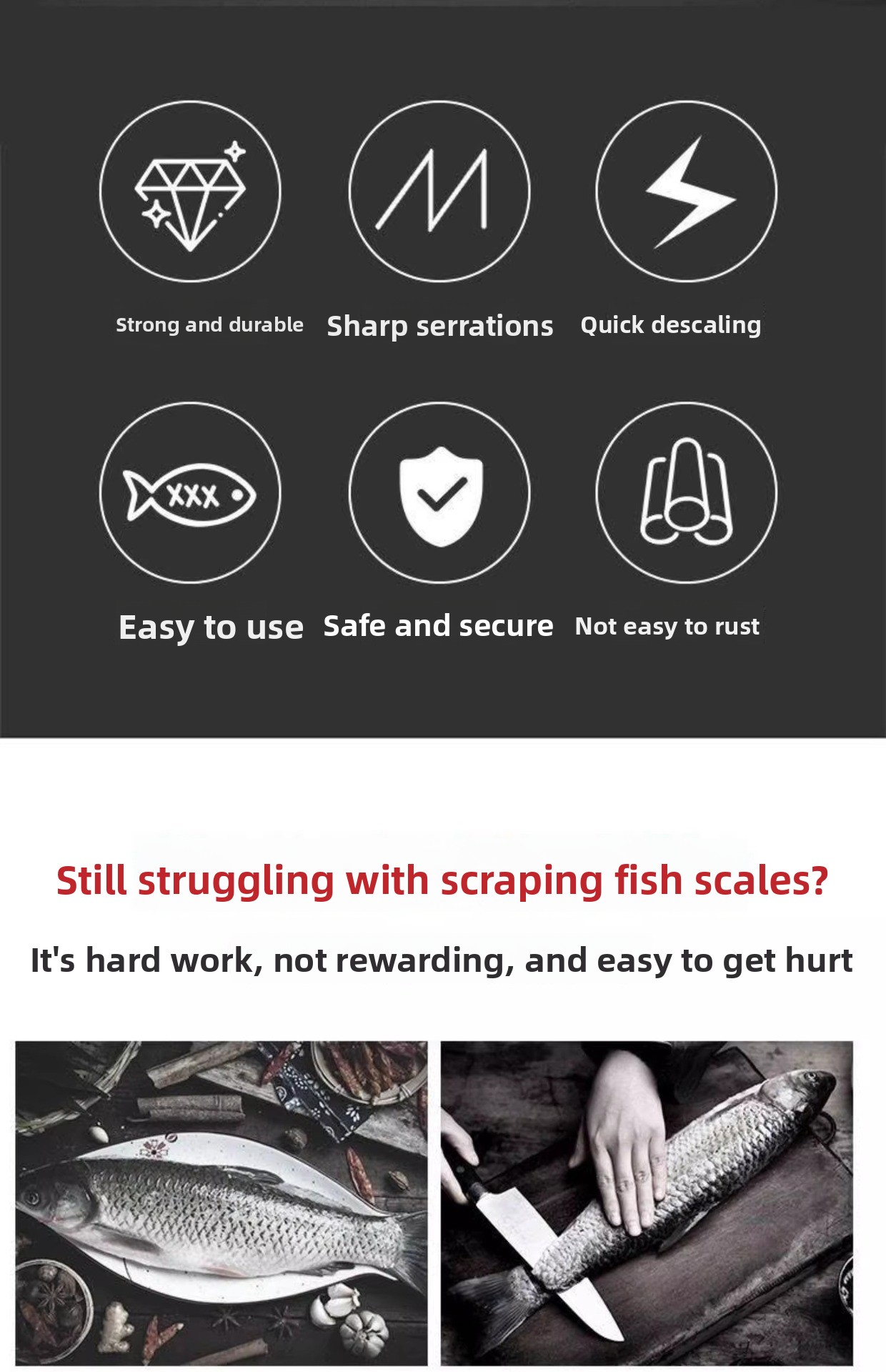 Efficient Scaling: Quickly removes fish scales with minimal effort