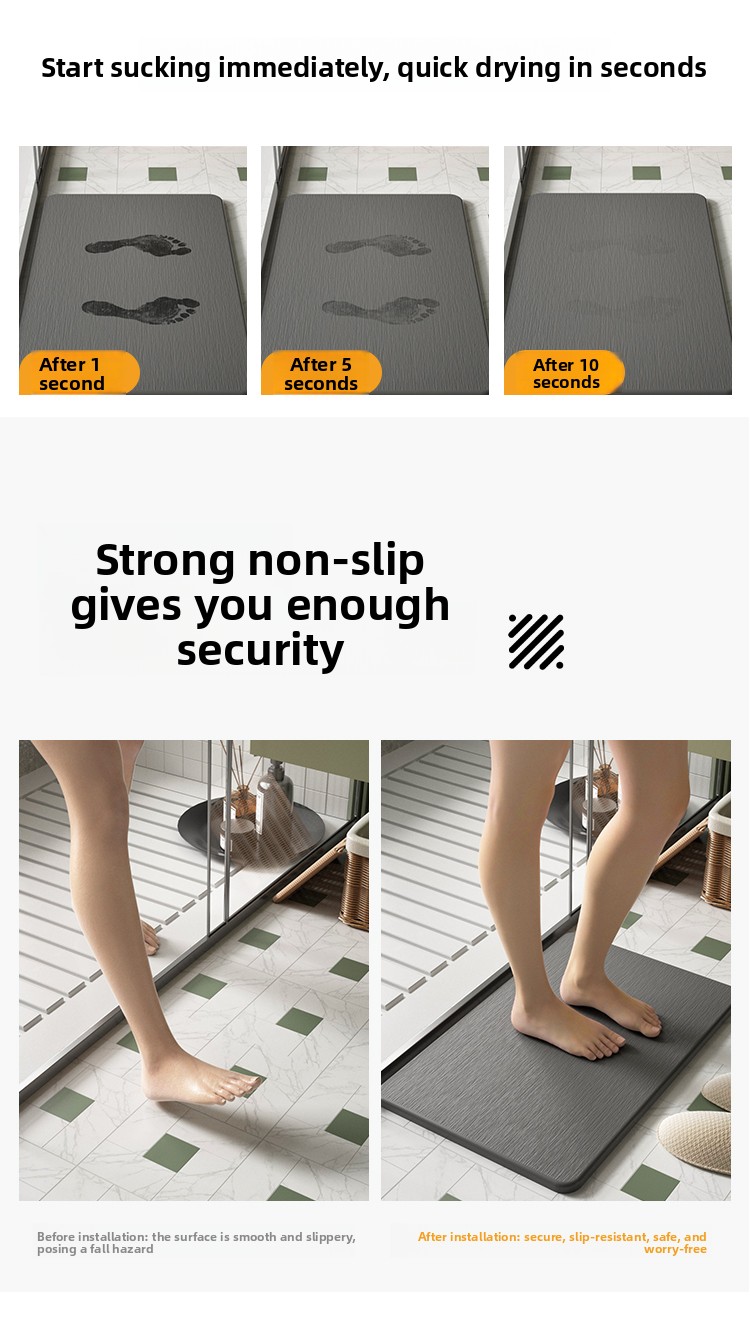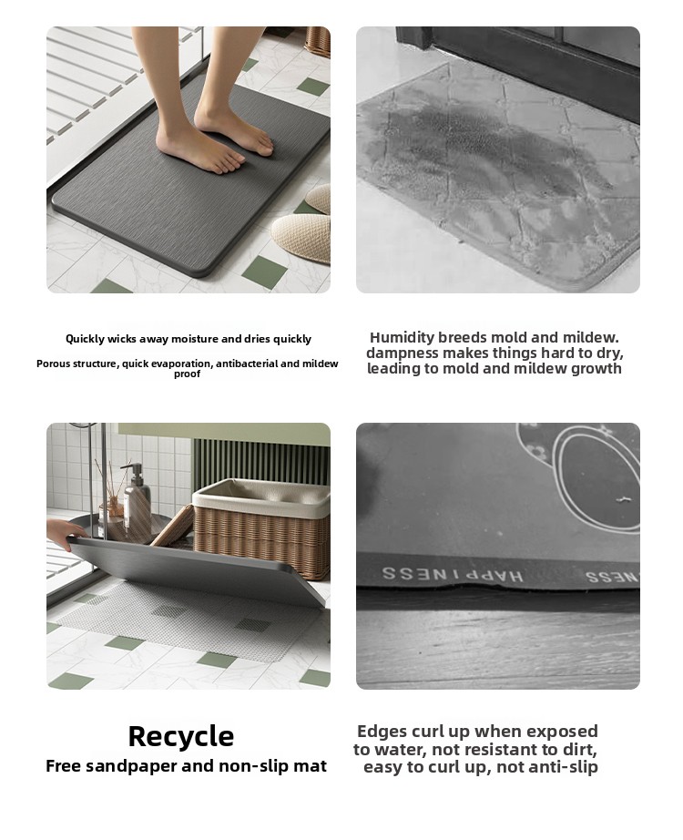 Quick Absorption: Diatomaceous earth material rapidly absorbs moisture, keeping floors dry