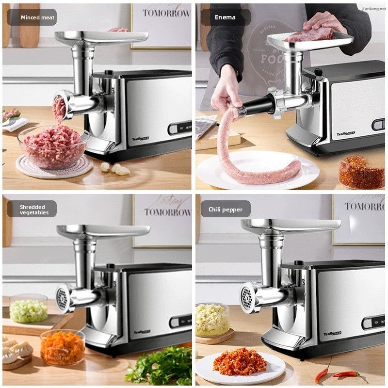 Multi-Functional: Capable of shredding, slicing, and automatic sausage filling with chain-lock mechanism.