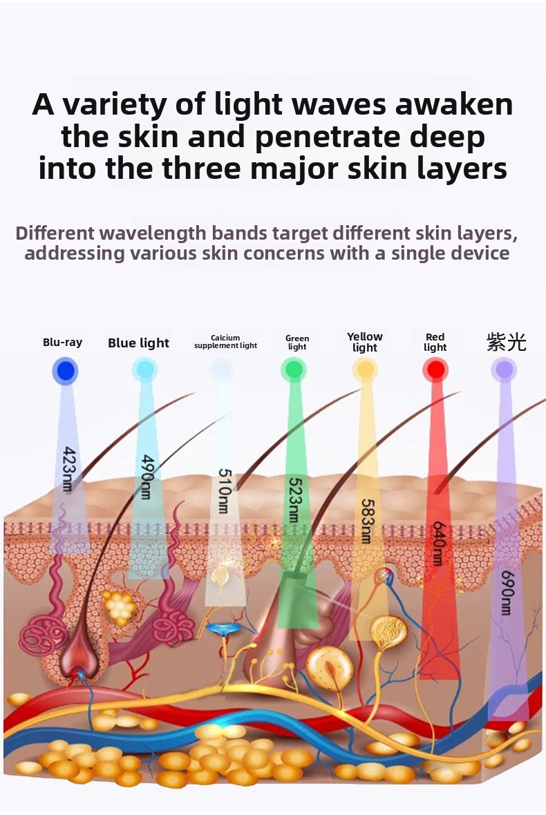 Advanced Spectrometer: Fifth-generation technology with multiple light modes for various skin treatments.