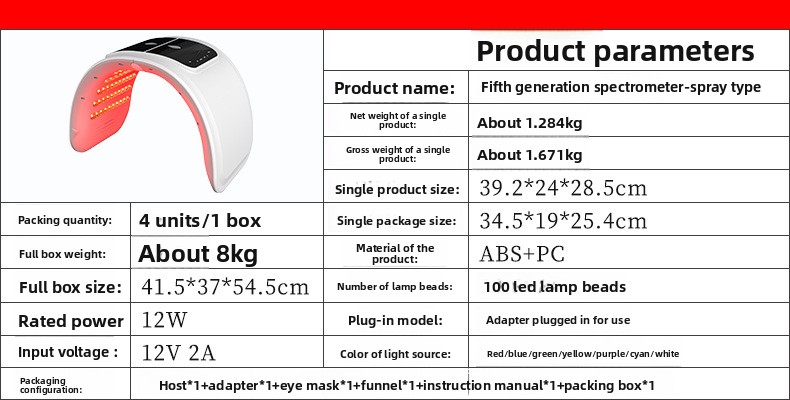 Multi-function Beauty Device: Features hydrating spray and seven-color infrared light therapy for