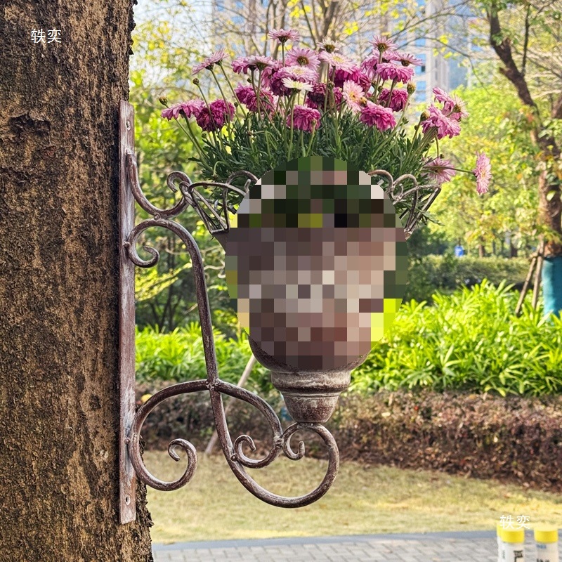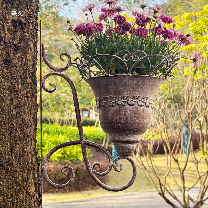 Vintage Design: Classic European-style iron flower basket with an antique finish for timeless garden aesthetics.