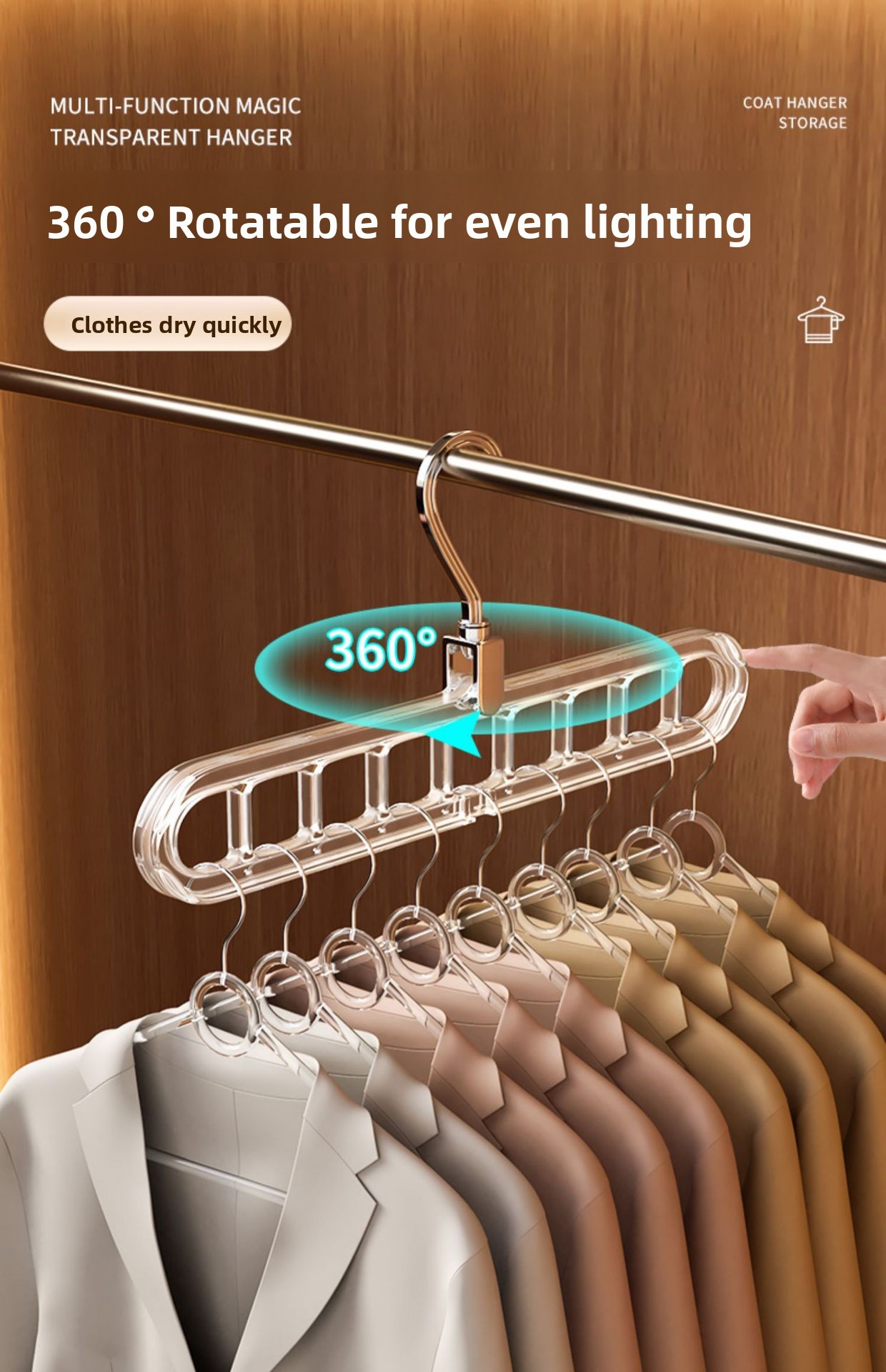 Multi-Purpose: Suitable for hanging clothes, pants, and ties, optimizing wardrobe organization.