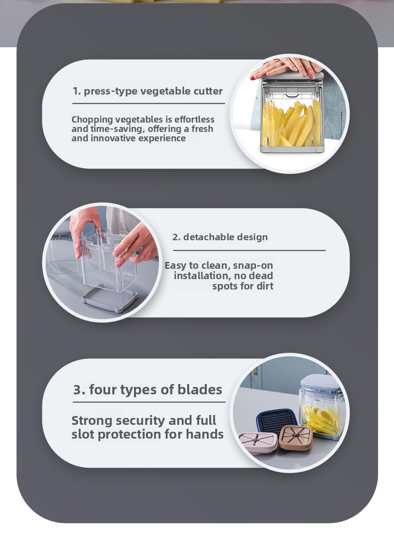 Multifunctional Design: Versatile vegetable cutter with multiple blade options for slicing, dicing, and