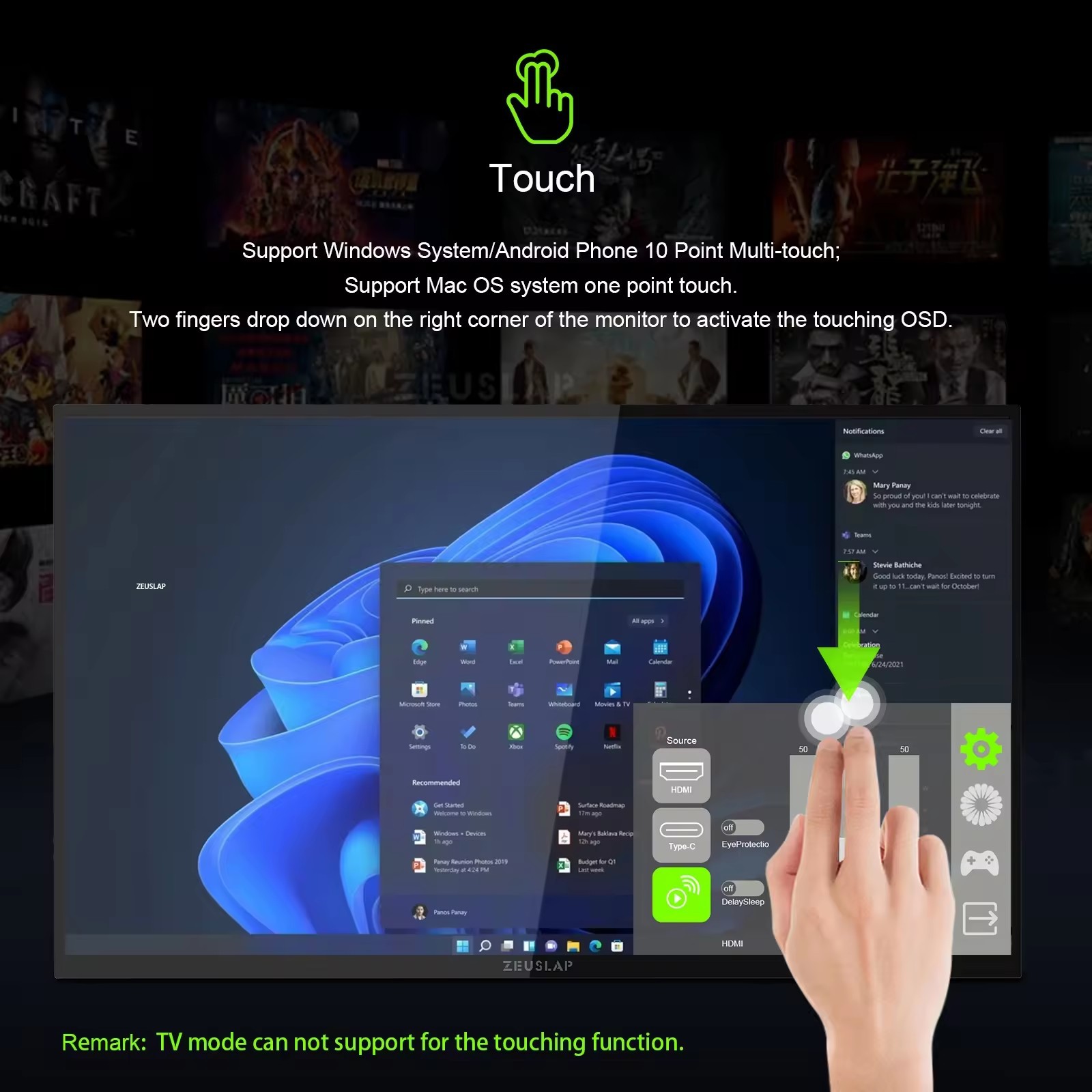 Touch Screen Capability: 18.5-inch IPS touch display with responsive interaction