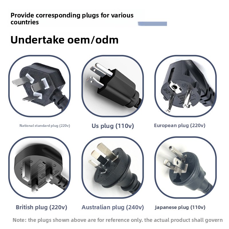 Multiple Plug Options: Compatible with US, EU, UK, and AU electrical standards