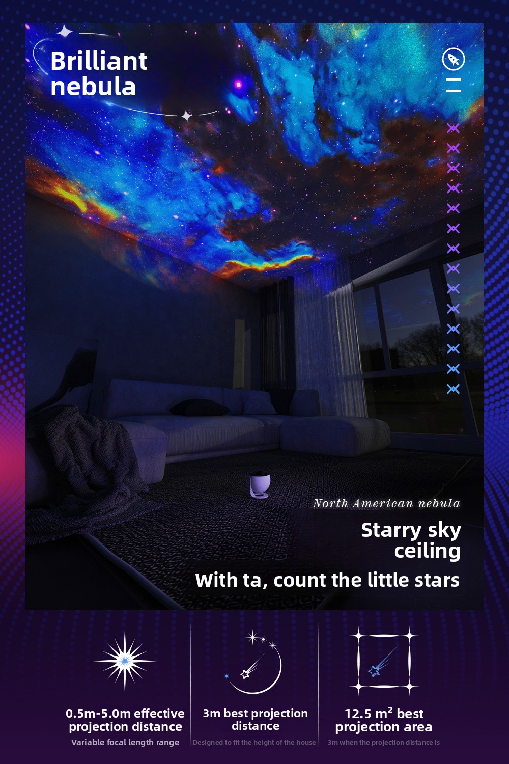 High Definition: Advanced HD focusing technology delivers clear and vibrant starry projections.