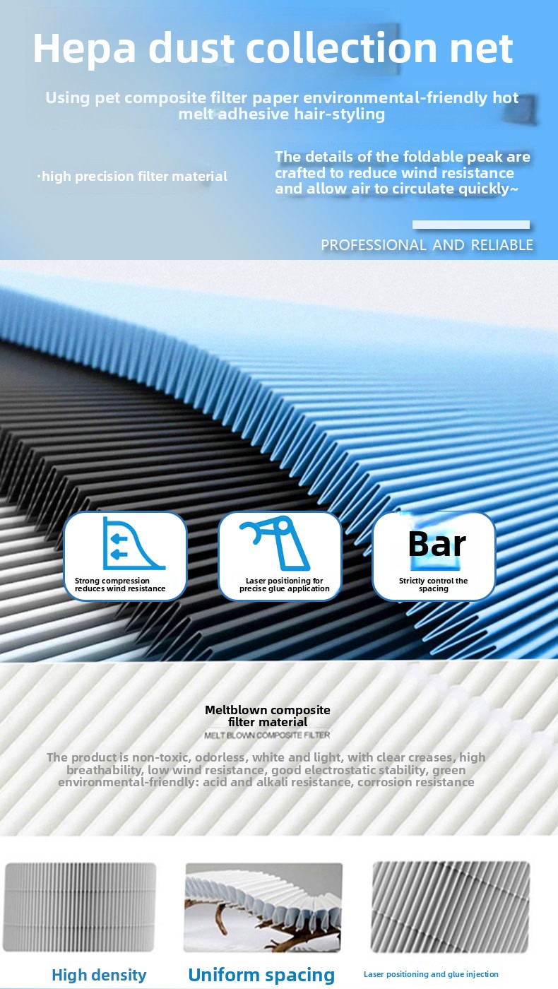 Material: Composite filter media (non-woven fabric, carbon, HEPA material)