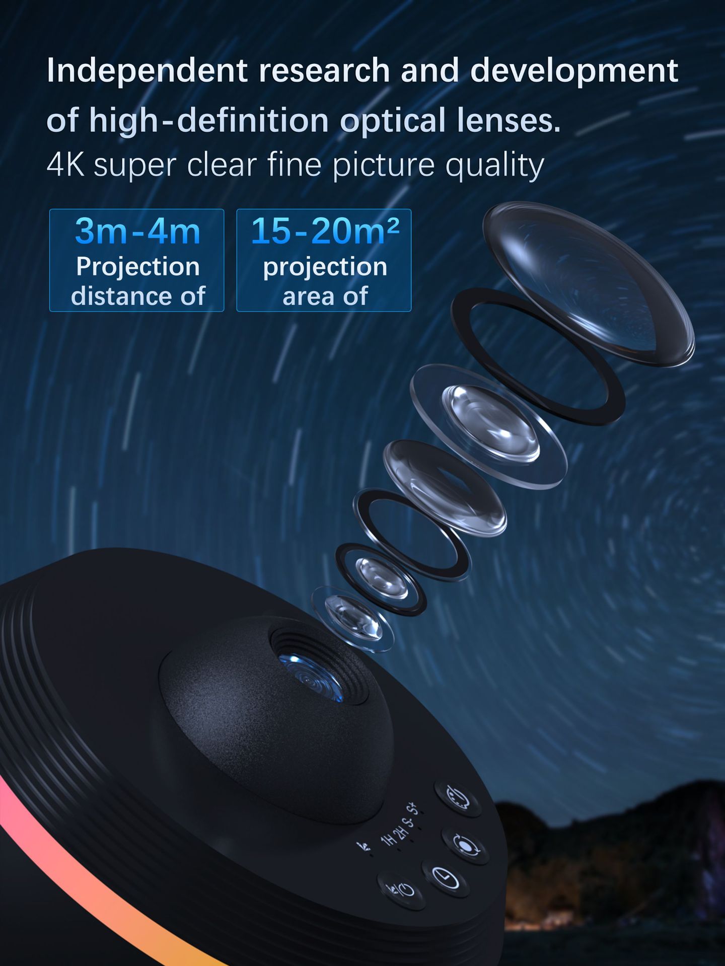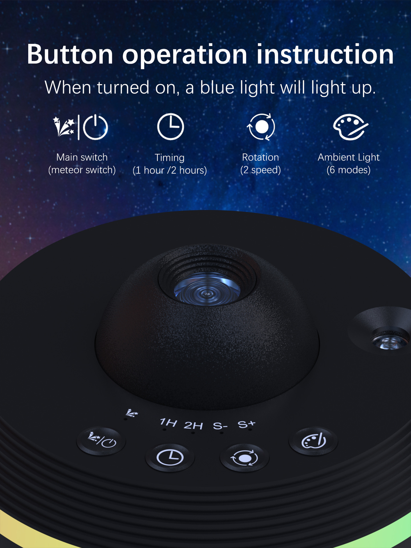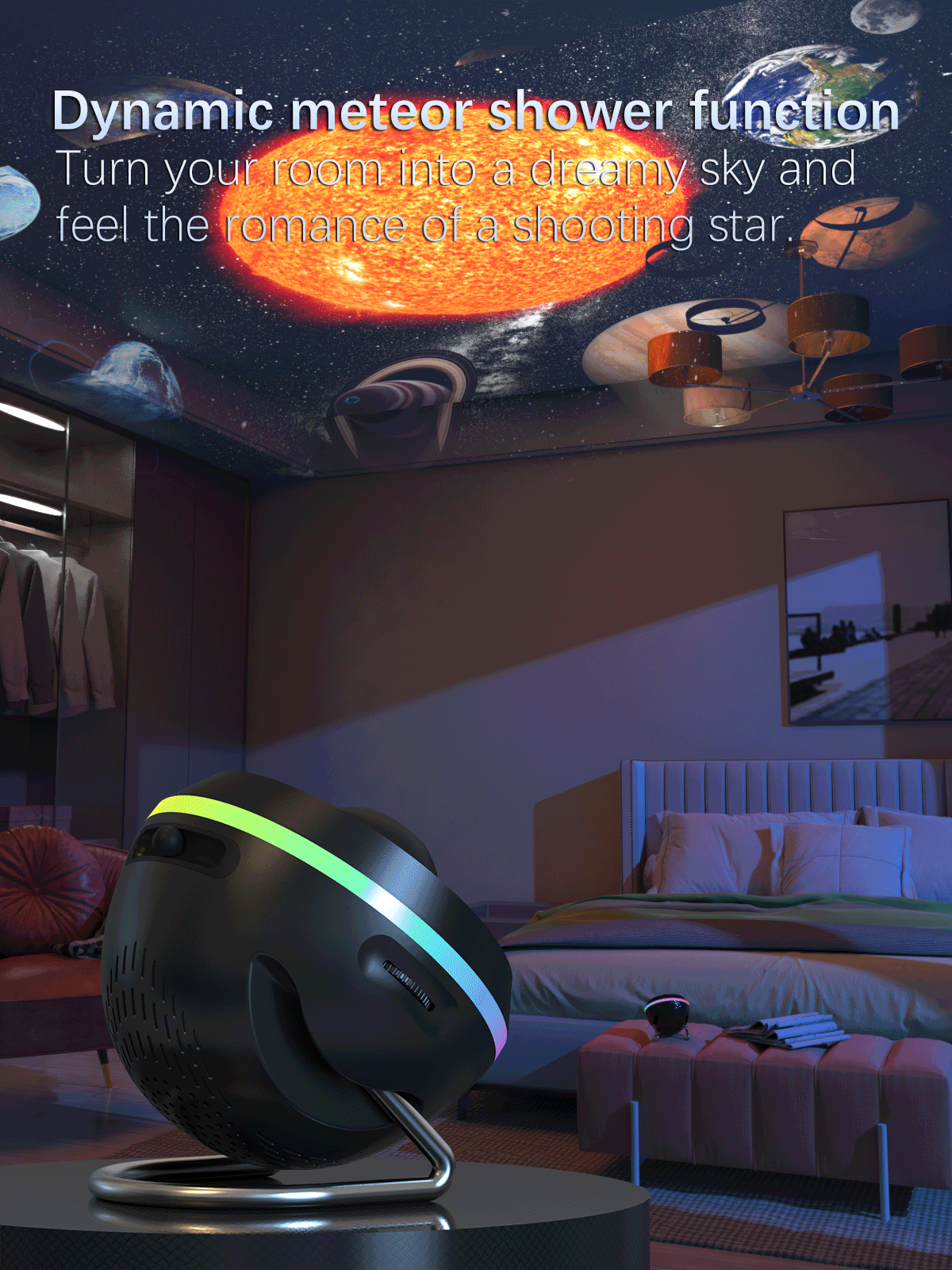 Galaxy Projection: Projects dynamic meteor and starry sky effects for immersive atmosphere.