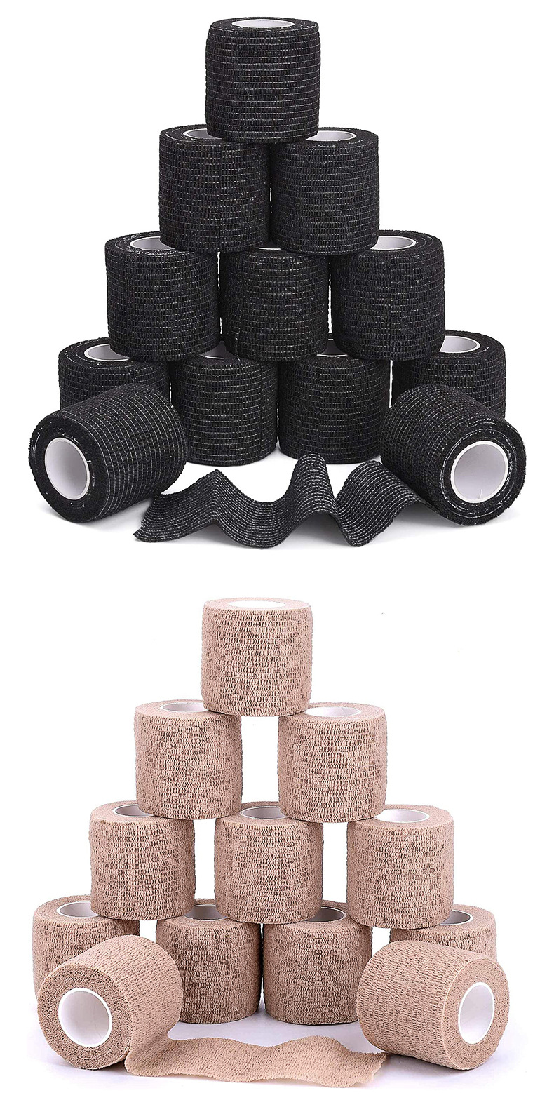 Self-Adhesive Bandage: Elastic, non-woven fabric bandage that sticks to itself without additional fasteners, ideal