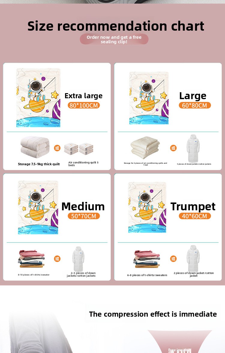 Vacuum Compression – Efficient space-saving storage solution for clothing and bedding