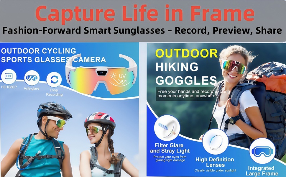 Integrated Camera: Combines sunglasses with a built-in camera for convenient photo and video recording